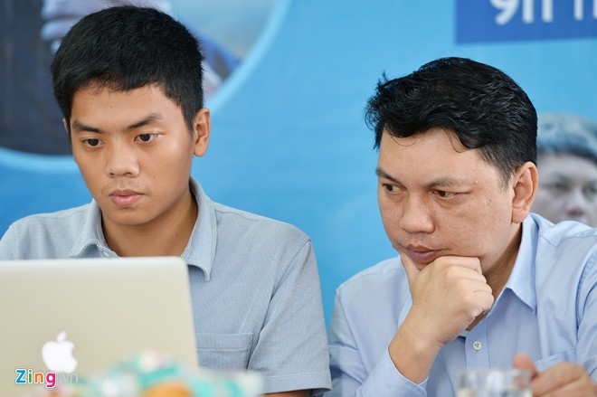 | Tổng thư ký VFF Lê Hoài Anh (phải) trả lời trong buổi giao lưu trực tuyến độc giả Zing.vn. Ảnh: Hoàng Hà. |