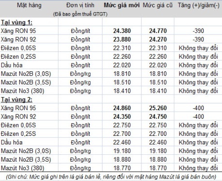 Tập đoàn Xăng dầu Việt Nam (Petrolimex) vừa có thông báo về việc giảm 390 đồng/lít xăng kể từ 20h00 tối 7/10 trong khi giá các mặt hàng dầu mazut, dầu diesel và dầu hỏa giữ nguyên.