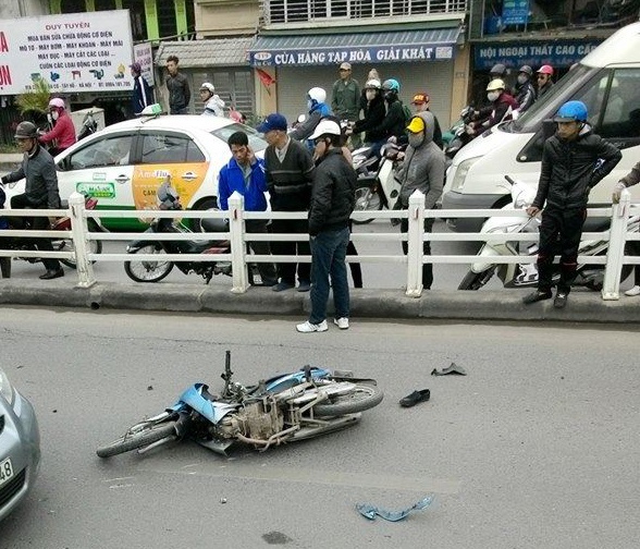 Cú đâm mạnh khiến cả 2 văng ra, bất tỉnh, bị chảy nhiều máu. Nhiều người đi đường đưa 2 nạn nhân đi cấp cứu và báo lực lượng chức năng.