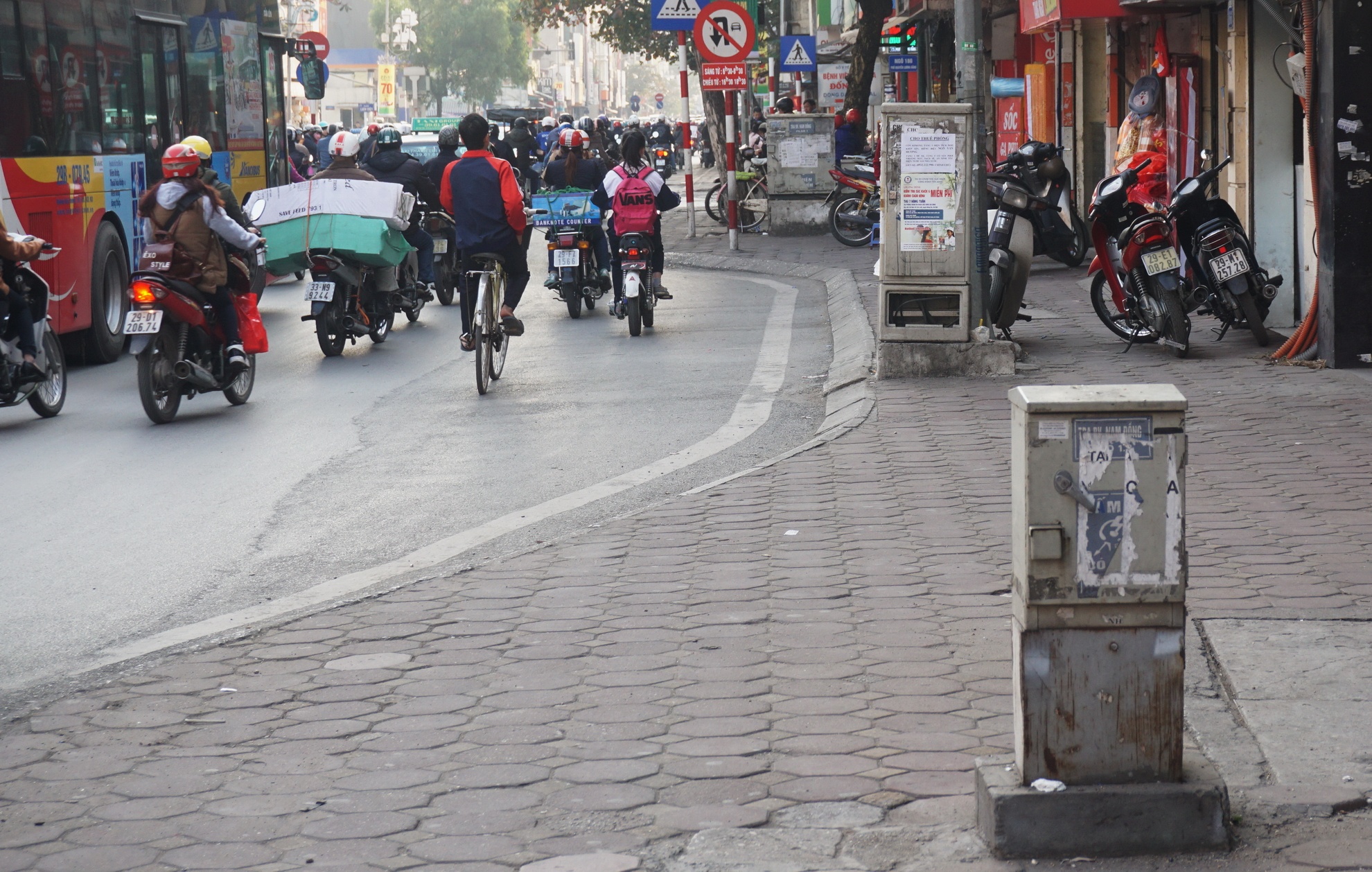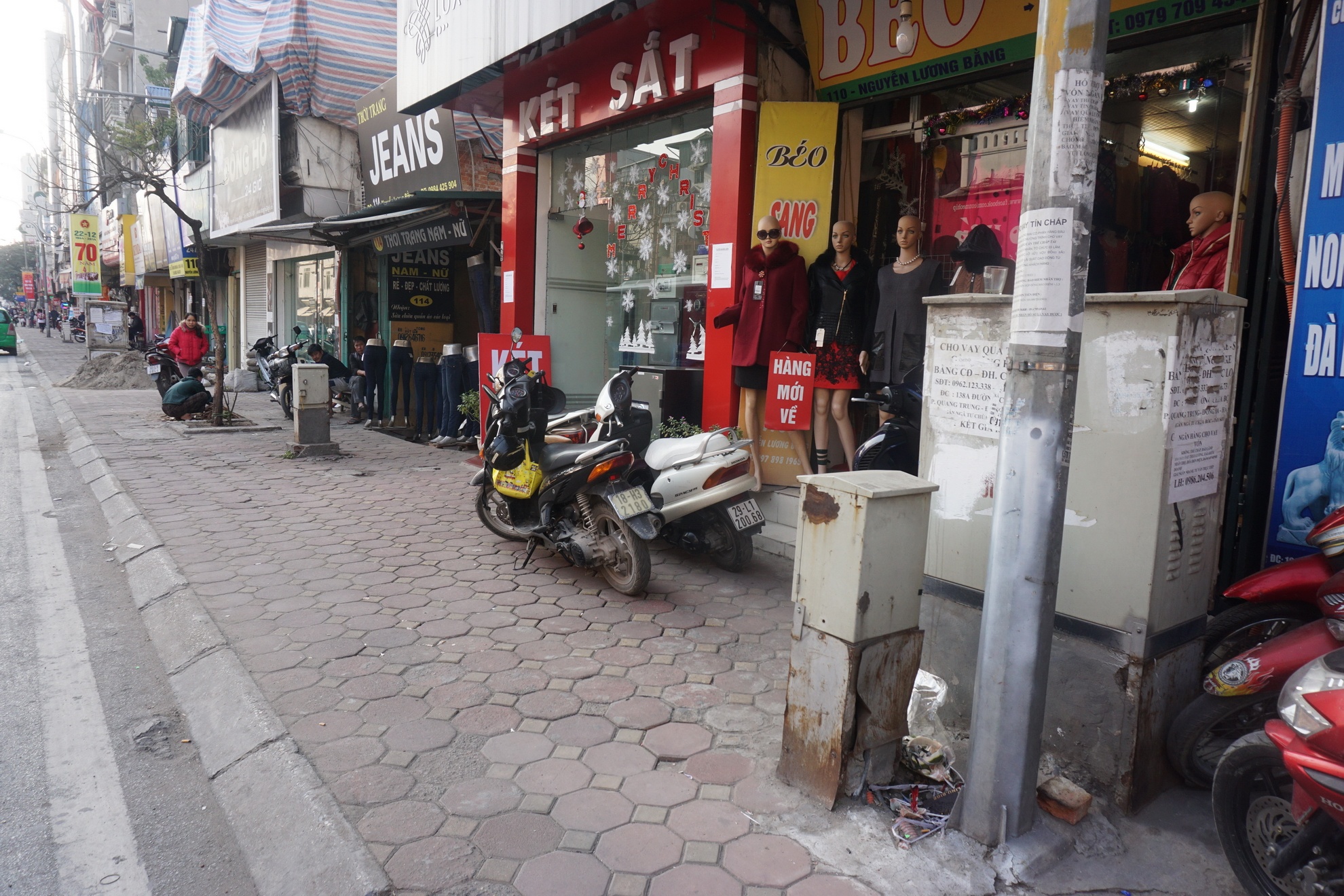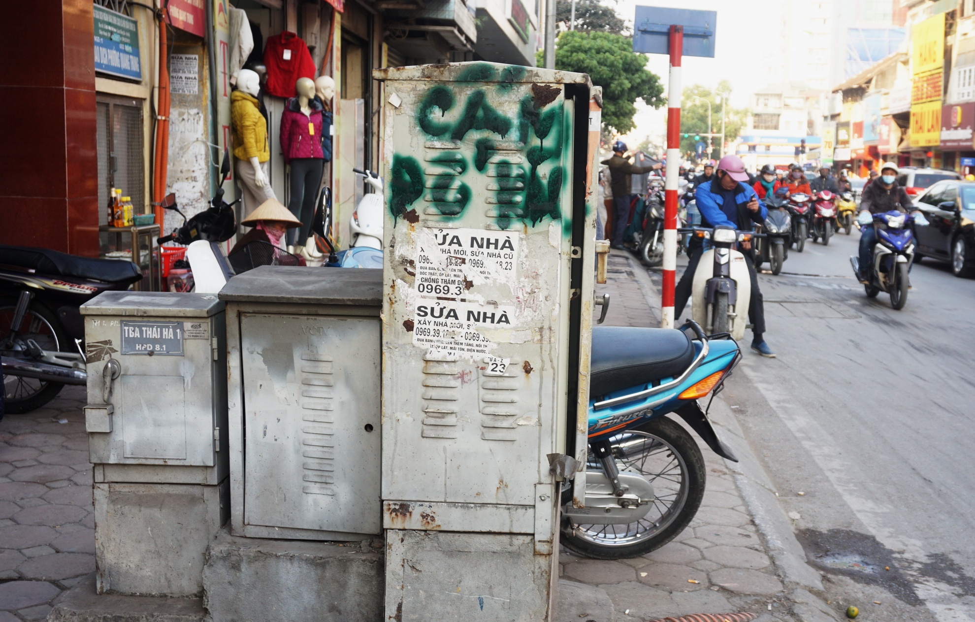 Vỉa hè vốn đã chật hẹp nay lại có 3 tủ điện xếp hàng ngang.