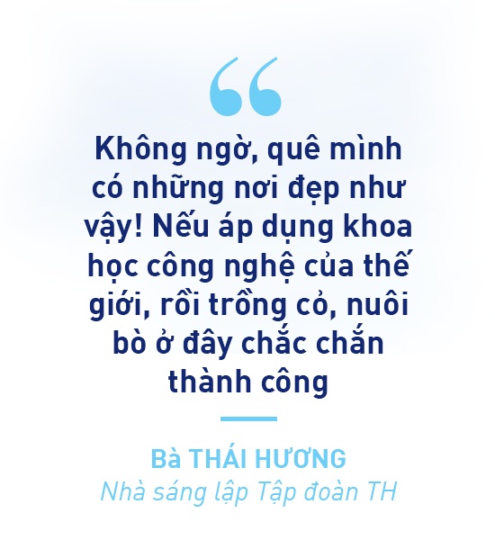 Ý tưởng đến trong đầu, cộng với lời kêu gọi của người đồng hương - khi ấy là Chủ tịch UBND tỉnh Nghệ An - ông Phan Đình Trạc: “Là người Nghệ, sao chị không về quê hương đầu tư, đóng góp cho tỉnh nhà?”, bà Thái Hương càng thêm quyết tâm gây dựng mô hình chăn nuôi chế biến sữa tươi quy mô lớn, hiện đại tại quê hương.