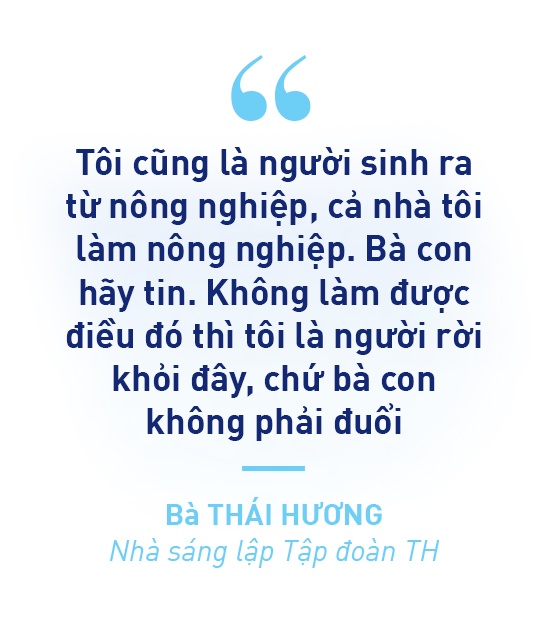 Từ hơn 10 năm trước, bà Thái Hương đã nhen nhóm tư duy làm nông nghiệp hiện đại, tạo sự thay đổi căn bản về cách làm nông nghiệp thông qua việc tích tụ ruộng đất, ứng dụng công nghệ 4.0 trong nông nghiệp với mô hình chăn nuôi bò sữa tập trung. 10 năm sau, TH trở thành thương hiệu bảo chứng cho chất lượng sữa được nhiều người Việt lựa chọn, tin dùng.