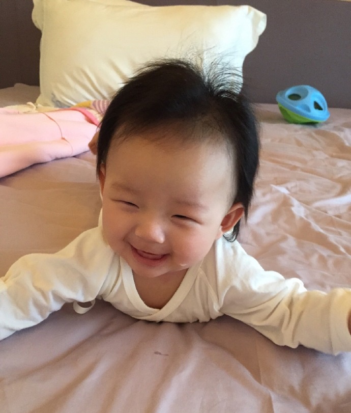 Mới đây, Từ Hy Viên đăng lên blog tấm ảnh cô con gái vừa biết lẫy cùng lời chia sẻ: "Nguyệt nhi sẽ sớm đứng dậy".