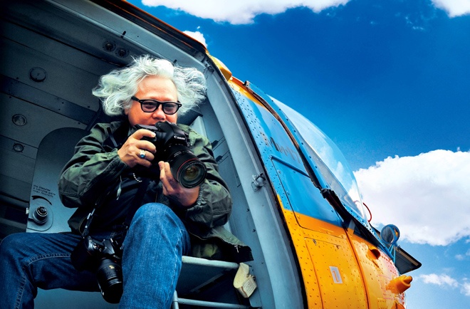 Giản Thanh Sơn là một người dễ xúc động. Thi thoảng gặp anh, được anh chia sẻ những bức ảnh mới nhất, tôi lại thấy đôi mắt anh rưng rưng, nhất là những hôm anh khoe những bức ảnh chụp từ không trung - biển đảo quê mình, hay TPHCM. Ảnh chân dung nghệ sĩ Giản Thanh Sơn trong một lần tác nghiệp.