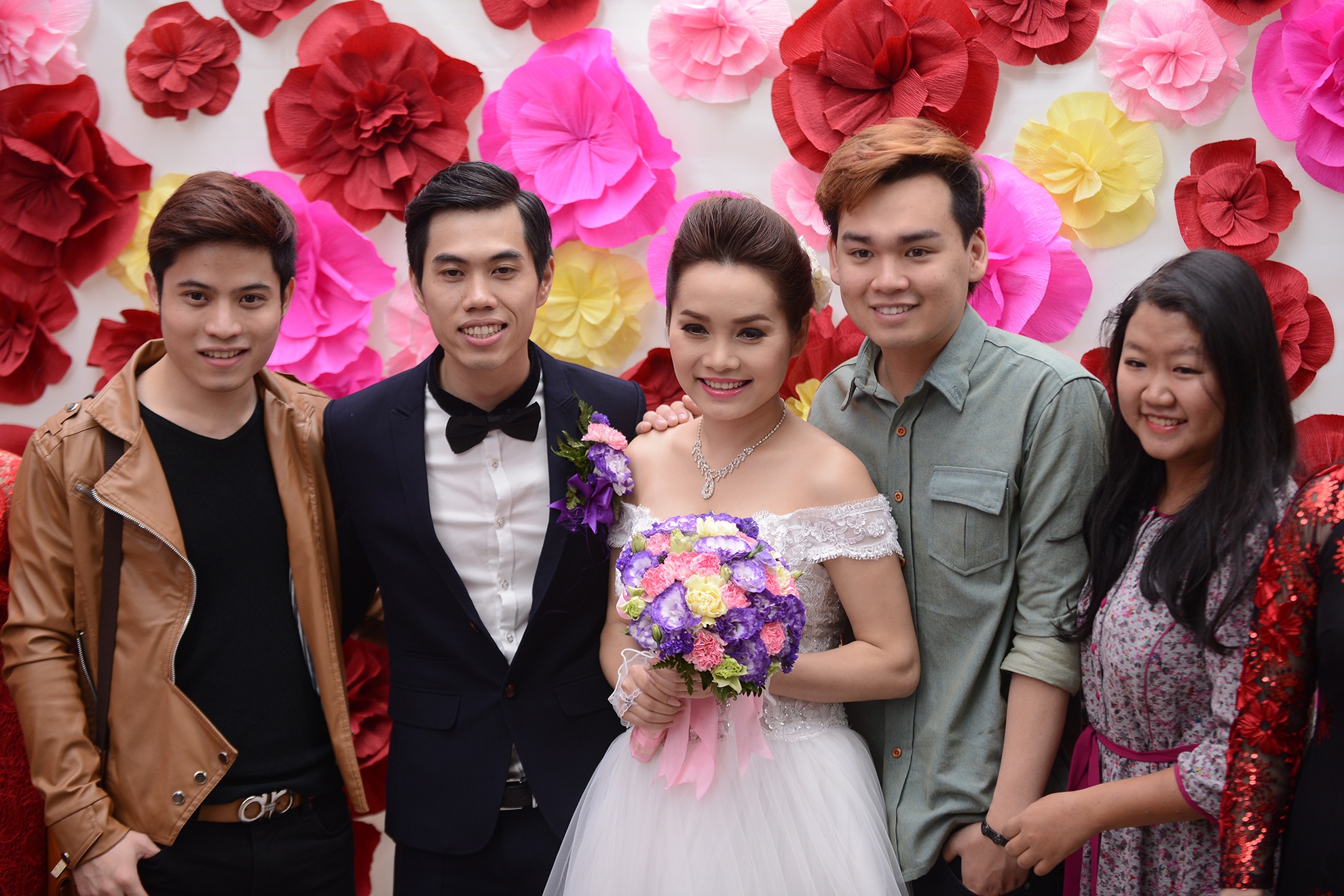| Những người bạn thân của Thúy Trang khi tham gia cuộc thi Sao Mai điểm hẹn là Nam Hùng, Trung Quân cũng có mặt để chúc mừng hạnh phúc cặp đôi. |