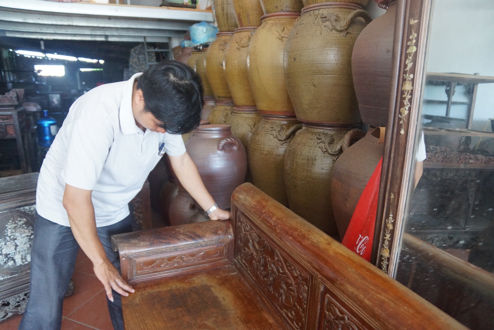 | Những chiếc tủ cổ cũng được ông Ngọc hào hứng giới thiệu, giá ông thu mua của các nhà dân trong vùng khoảng hơn chục triệu nhưng bán ra có những tủ được trả tới 50 - 60 triệu. Cửa hàng rộng tầm 60m2 nhà ông bày chật tủ cánh, tủ chè, án gian, đồng hồ gỗ cổ chồng chất lên nhau... giá trị cả tỷ đồng và hơn một nửa số tiền ấy là tiền lãi của ông bà Ngọc Hà bởi hầu hết đồ để trong cửa hàng đã có khách trả tiền chờ chở đi. Ông Ngọc chia sẻ, hàng hết thì lại có. Một mình ông thu mua đồ cổ trong vùng không xuể thì ông nhờ người giới thiệu và sẵn sàng trả hoa hồng cao. |