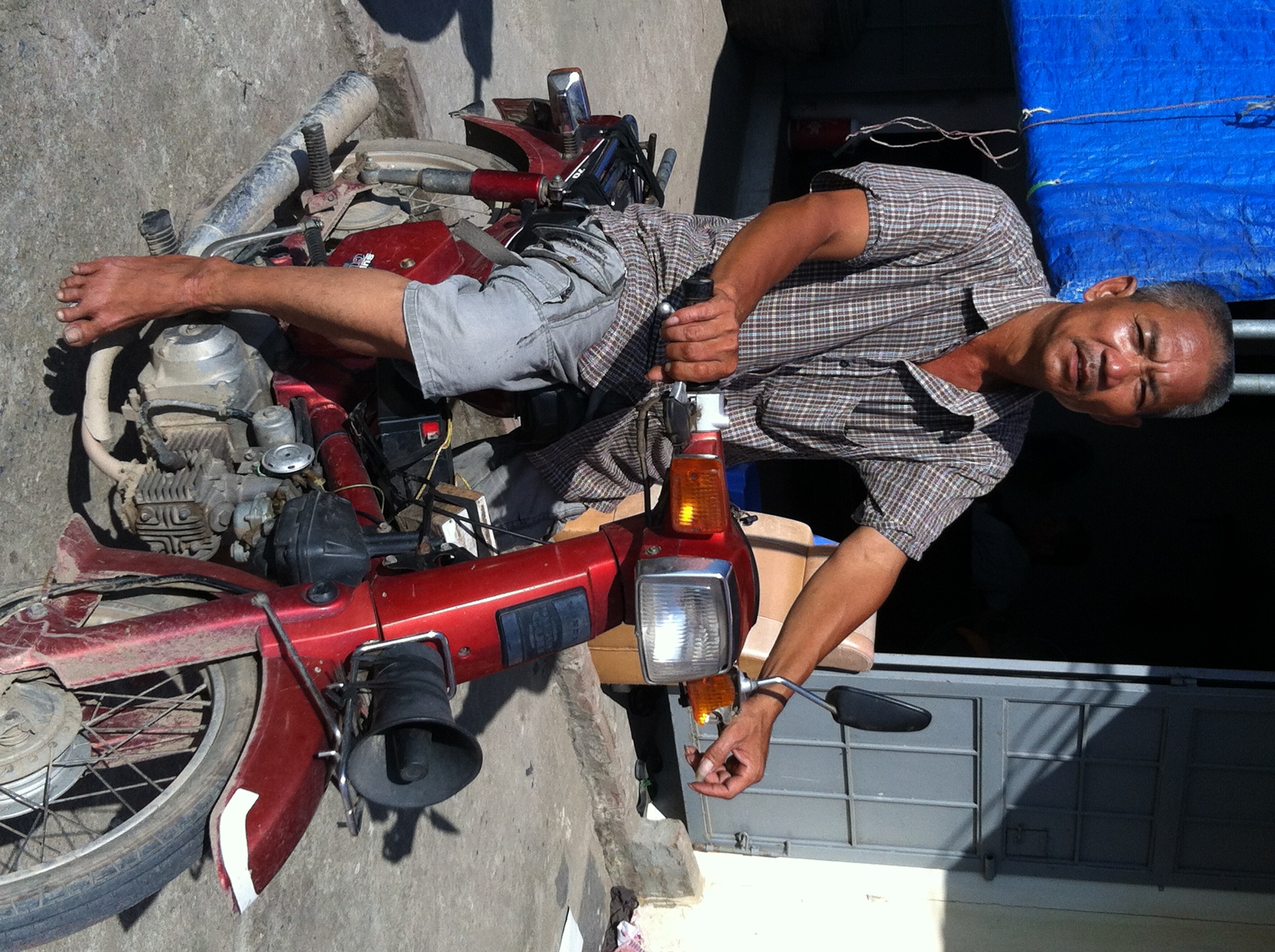 | Ông chủ Nguyễn Văn Ngọc (52 tuổi, Kim Chung, Hoài Đức, Hà Nội) vốn là nông dân chính hiệu. Cuộc sống khó khăn nên vợ chồng ông đã đổi qua nhiều nghề như bán vôi tôi, dỡ nhà cũ rồi buôn đồng nát. Trên chiếc xe Honda 82 trông cà tàng nhưng bền bỉ, thêm chiếc loa chạy ắc quy, ông Ngọc đi khắp các làng xa gần trên địa bàn huyện Hoài Đức thu mua đồng nát và nhận dỡ nhà cũ, mua ngói cũ, bàn ghế cũ... |