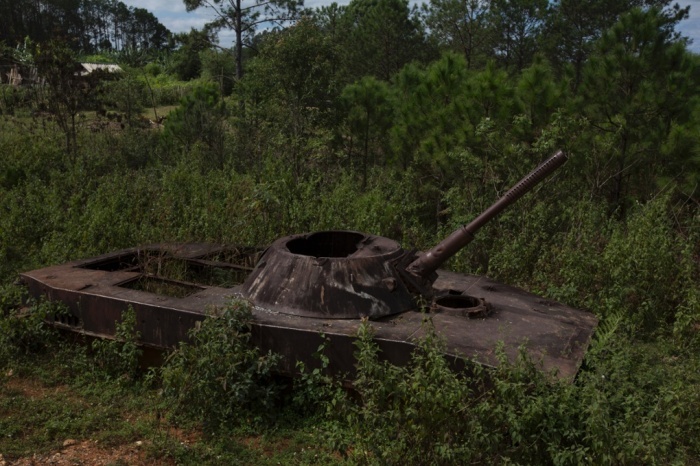 Xác một chiếc xe tăng PT-76 do Nga sản xuất tại khu vực Phou Khoun. Năm 1969, nó bị trúng bom của quân đội Mỹ.