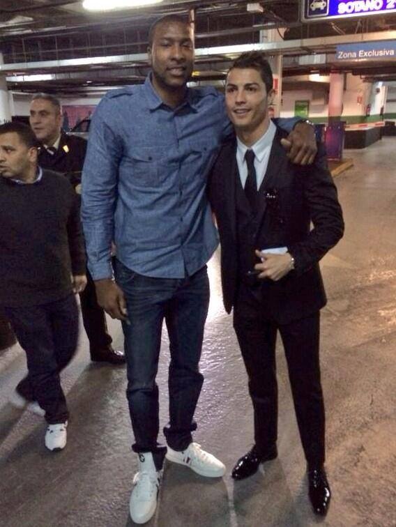 | Khi đứng cạnh vận động viên bóng rổ Marcus Slaughter, CR7 trông cũng thật nhỏ bé. |