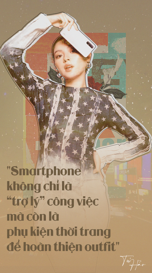Dành 6-8 giờ mỗi ngày để sử dụng điện thoại, Tú Hảo cho biết smartphone không chỉ cần có camera “xịn xò”, dung lượng pin lớn, mà còn phải sở hữu thiết kế bắt mắt như một phụ kiện thời trang, giúp cô hoàn thiện outfit trước khi ra ngoài.