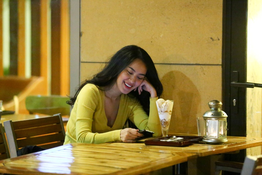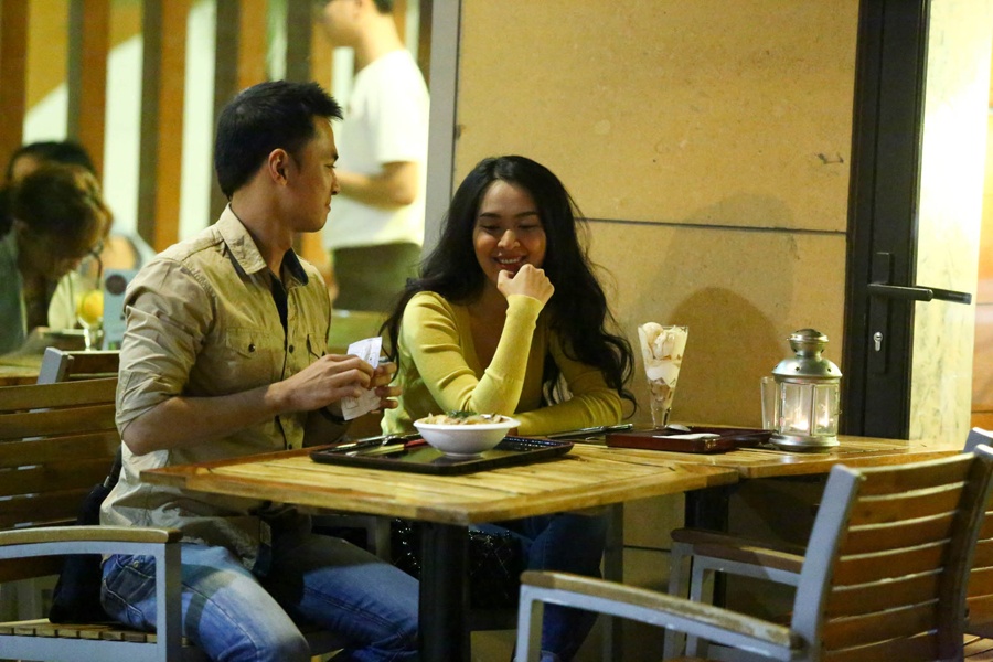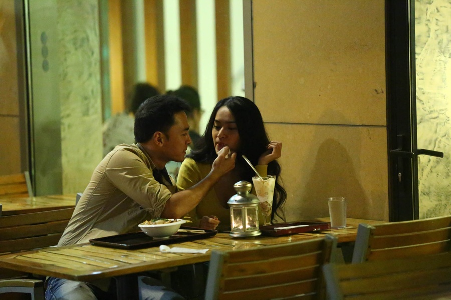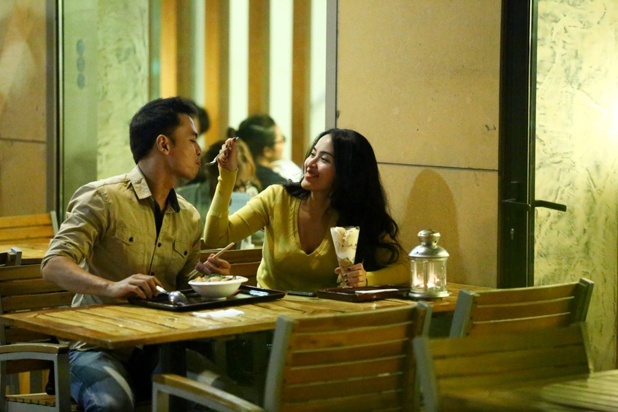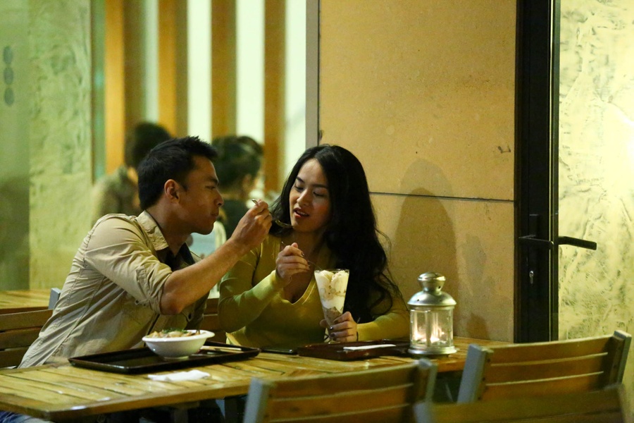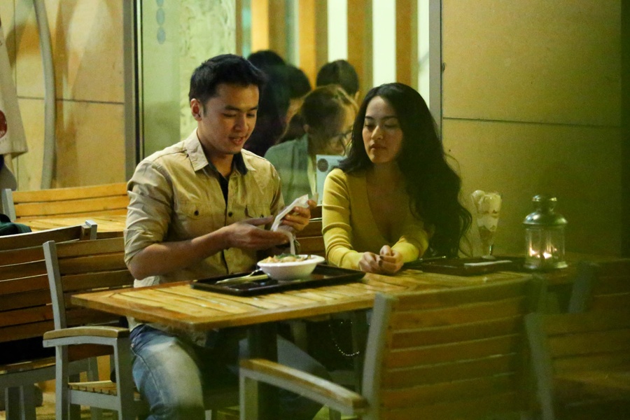 Sau khi công khai chuyện tình cảm, cặp đôi bị bắt gặp đang cùng nhau thưởng thức bữa tối tại một nhà hàng ở trung tâm Sài Gòn.