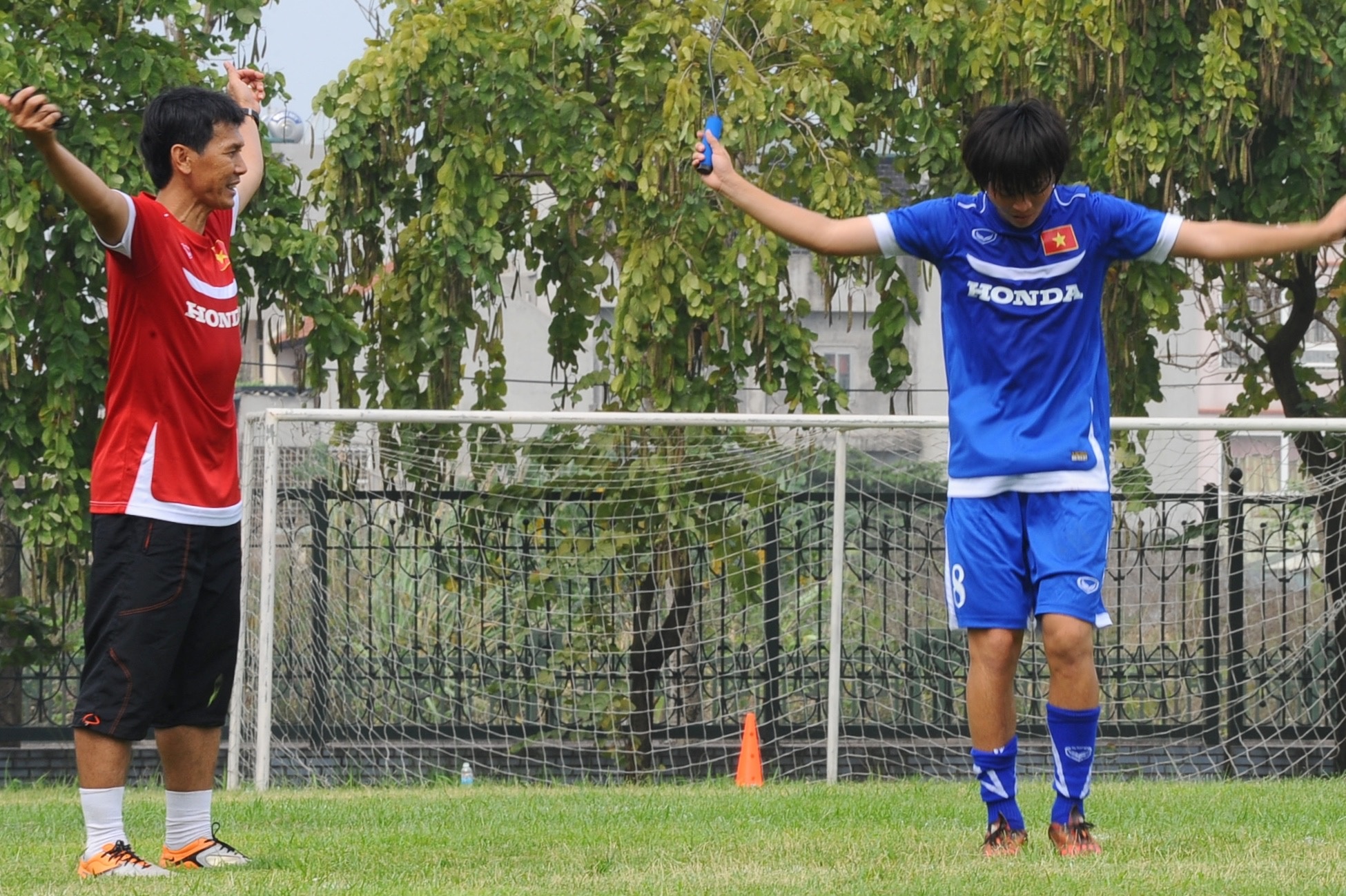 | Thủ môn Hoài Anh sau chấn thương cổ chân gặp phải vào chiều qua đã có thể trở lại tập luyện. Trong đợt tập trung lần này HLV Miura triệu tập 5 thủ môn và HLV thủ môn Nguyễn Quốc Tuấn. |