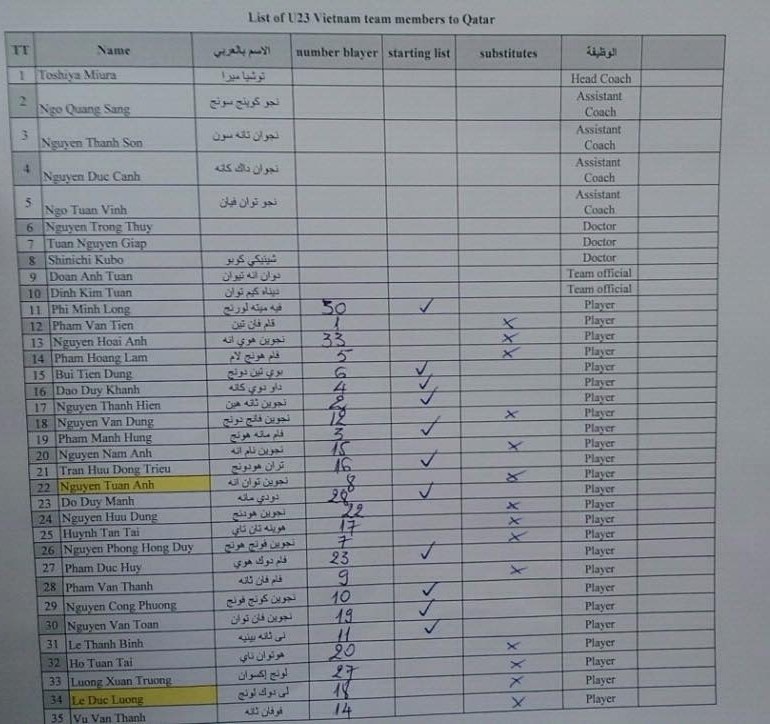 Trong danh sách đăng ký thi đấu trận giao hữu U23 Việt Nam - U23 Yemen trên sân vận động Doha (Qatar) hôm 4/1, HLV Miura dùng màu vàng để đánh dấu tên cầu thủ thuộc diện dự phòng là Nguyễn Tuấn Anh và Lê Đức Lương. Trước khi lên đường sang Qatar, nhà cầm quân người Nhật Bản có ý định loại 2 cầu thủ HAGL.