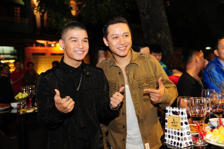 | Cường Seven - giọng ca trẻ của Hà thành - cũng có mặt để chúc mừng Tuấn Hưng lên chức ông chủ tiệm giày. |