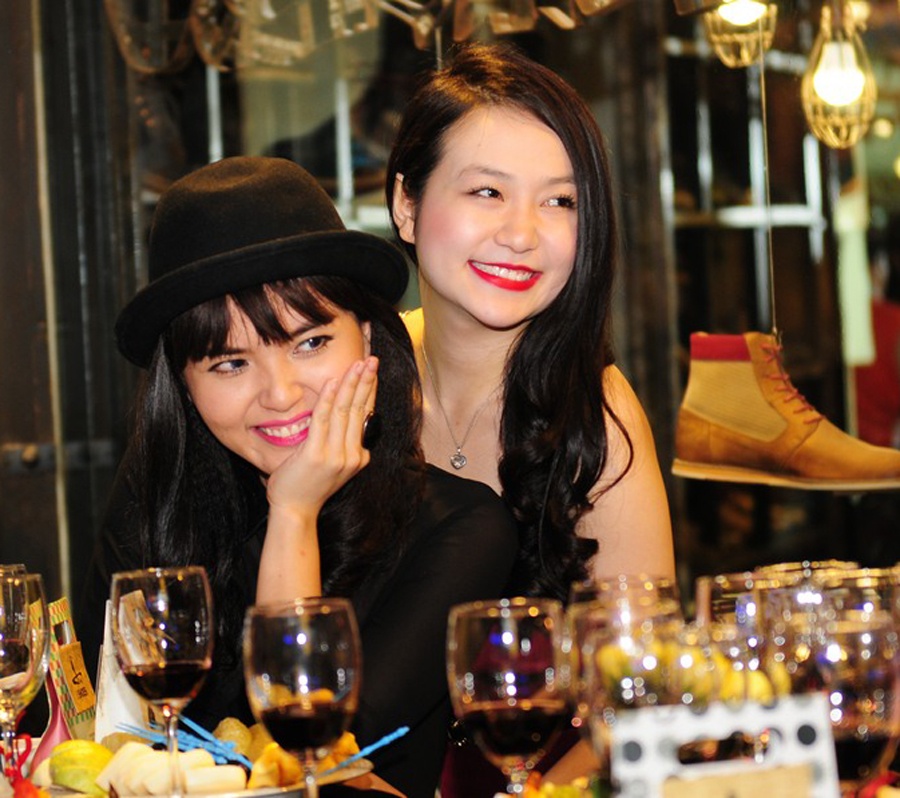 | Bạn gái Tuấn Hưng tỏ ra khá thân thiết với Lam Trang - bạn gái của Anh Tú, một cựu thành viên nhóm Quả Dưa Hấu. |