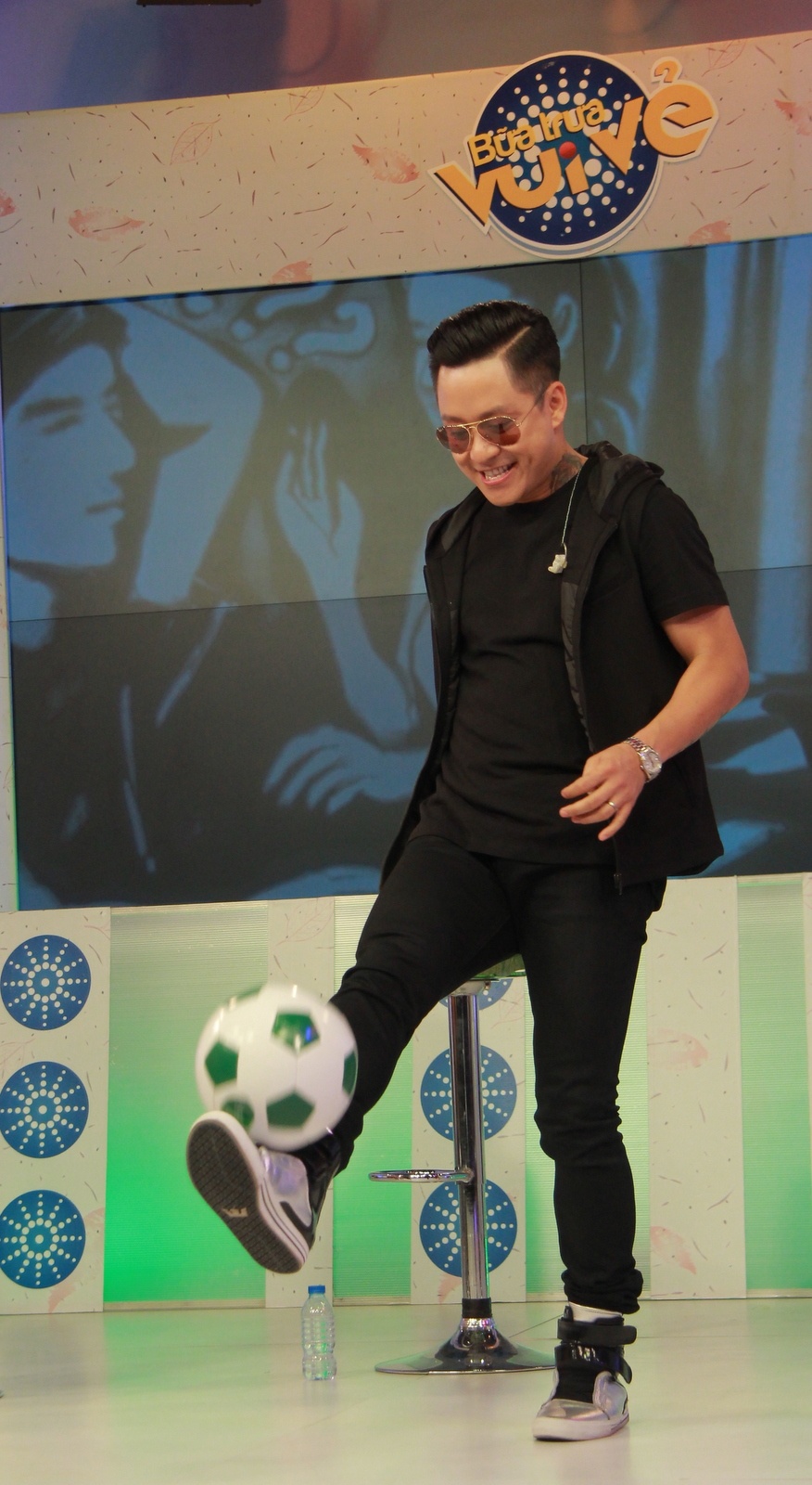 | Ngoài âm nhạc, bóng đá cũng là niềm đam mê cháy bỏng của Tuấn Hưng. Trong chương trình, ông bố một con trổ tài tâng bóng. |