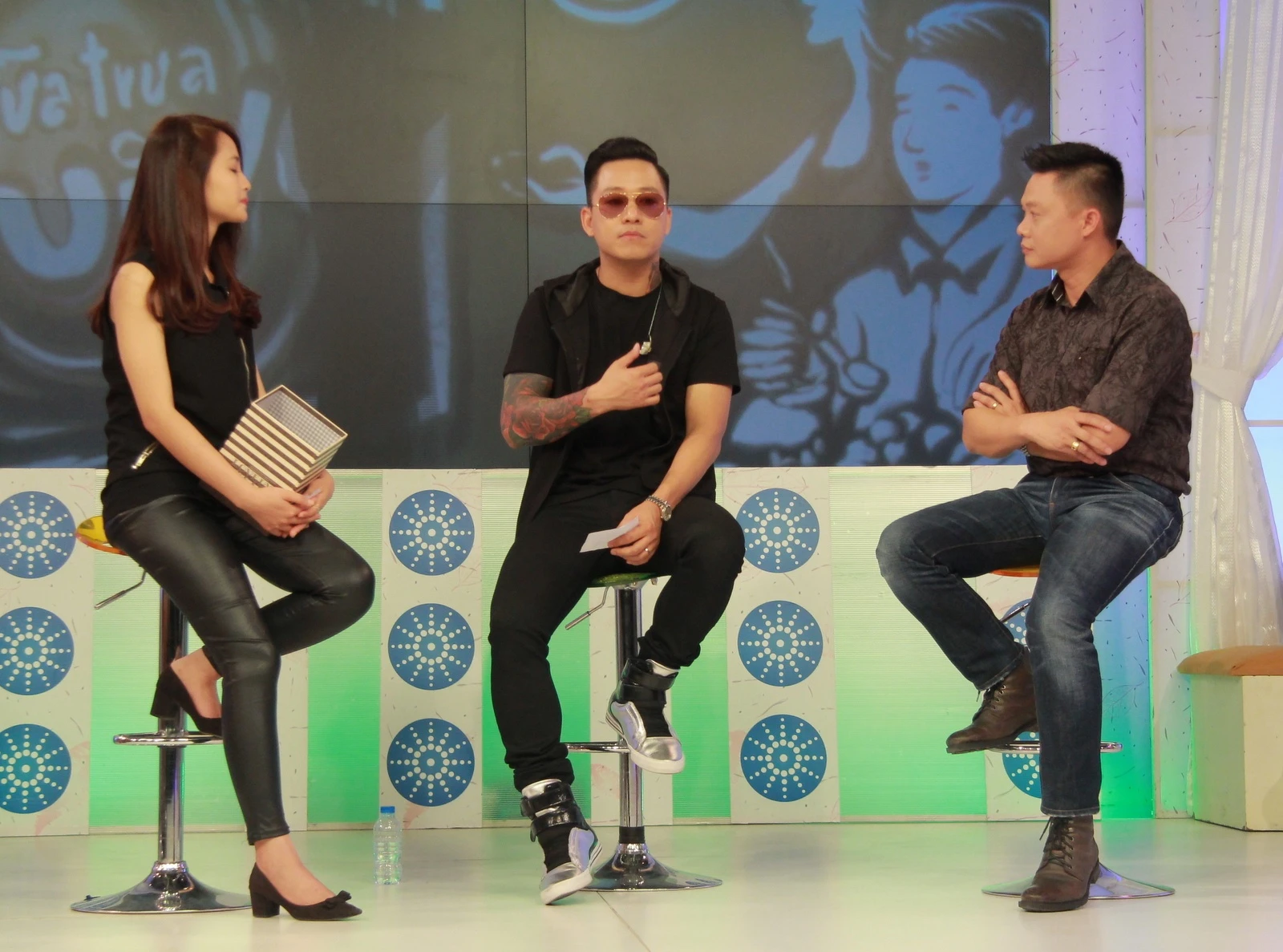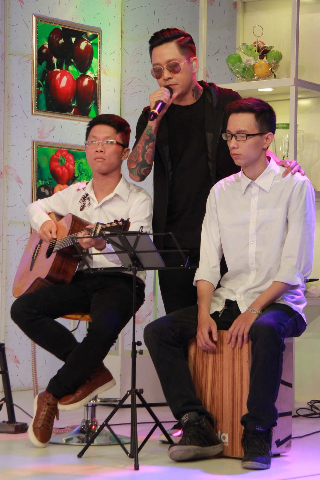 | Trong phần giao lưu, Tuấn Hưng giải thích, vì đau mắt và không muốn làm xấu đi hình ảnh của bản thân với người hâm mộ, anh buộc phải sử dụng kính mắt khi lên sóng truyền hình trực tiếp. |