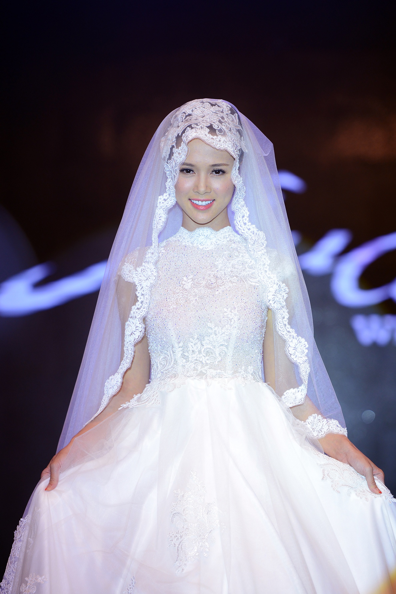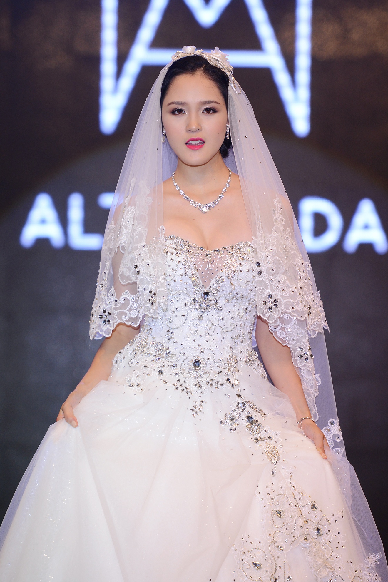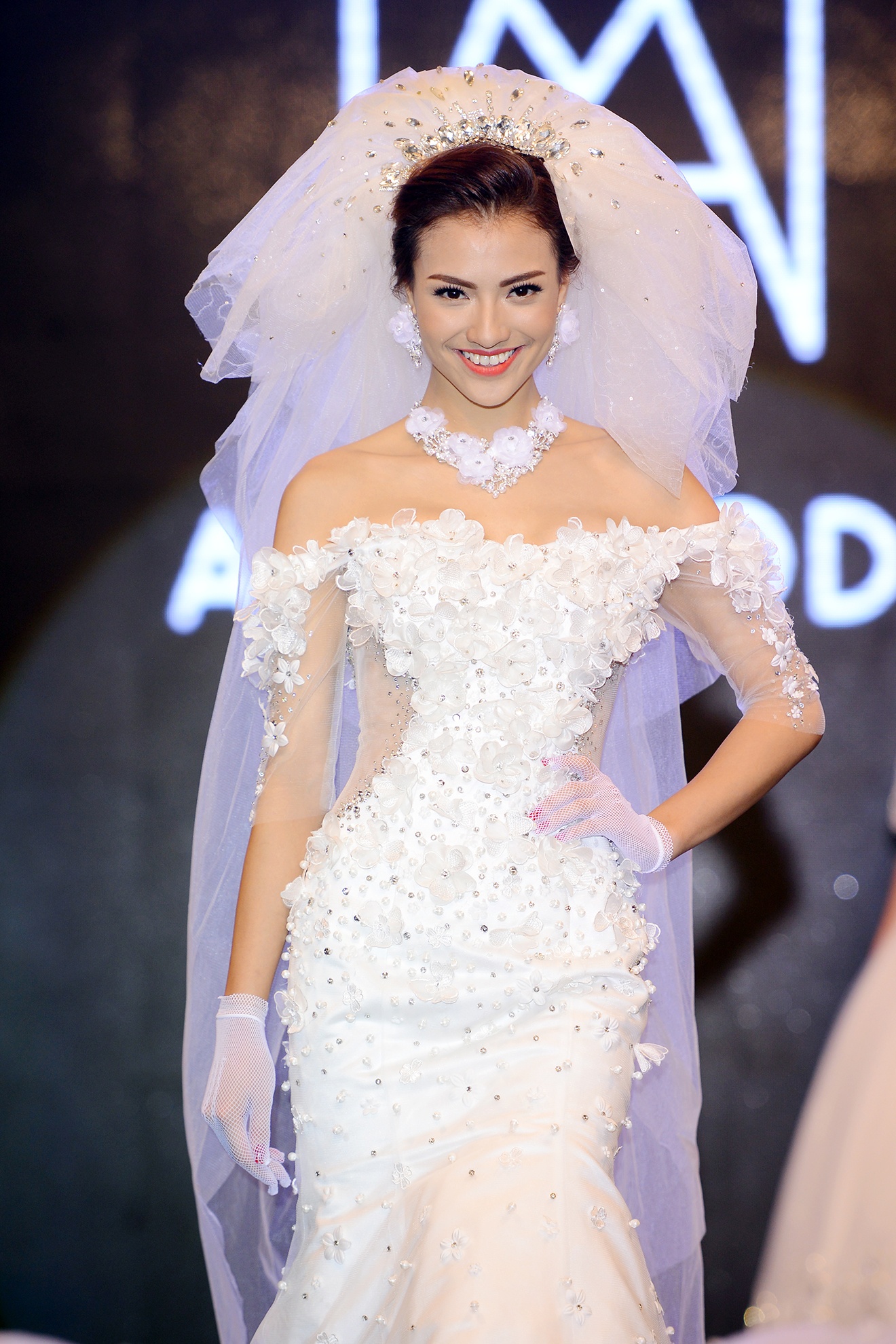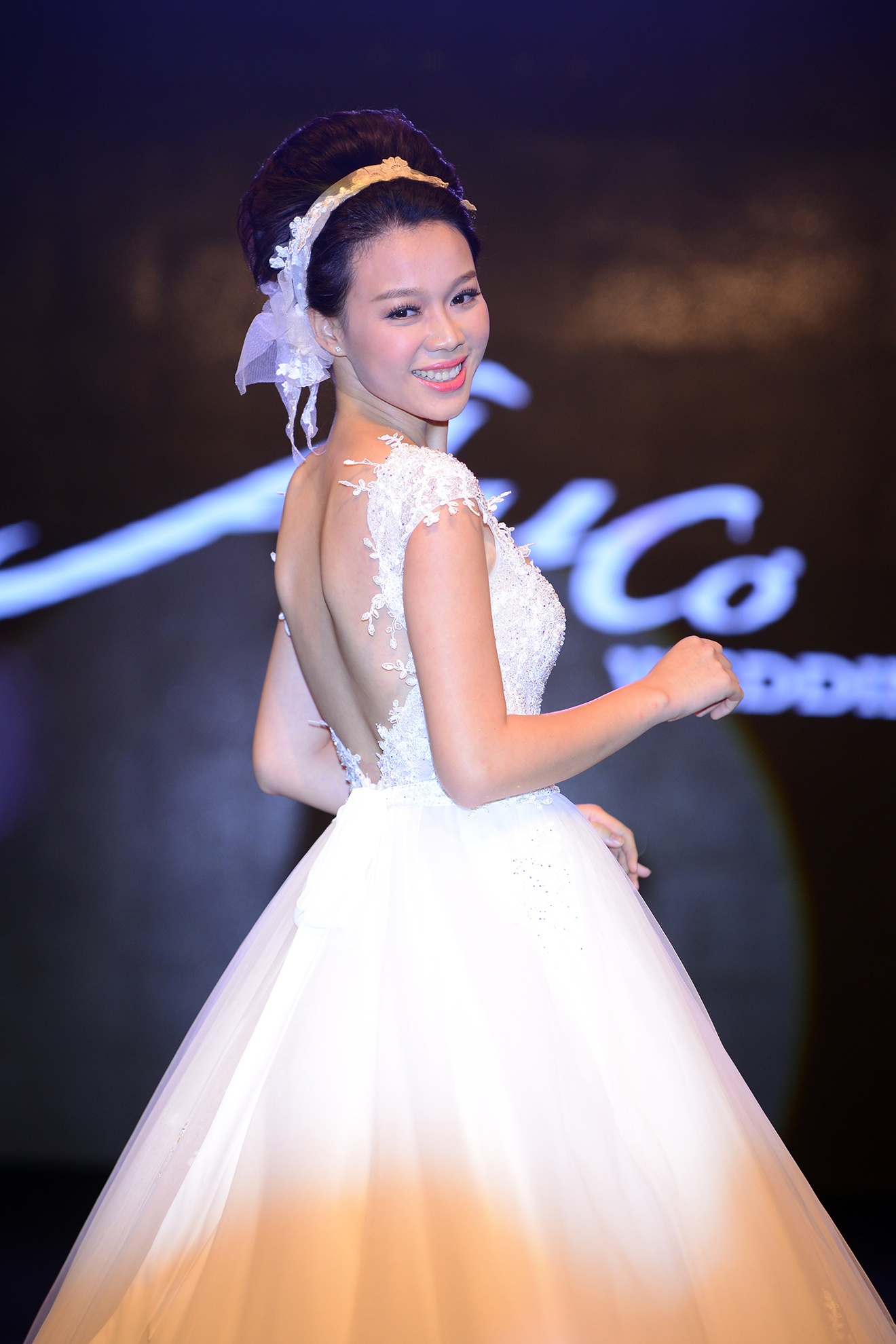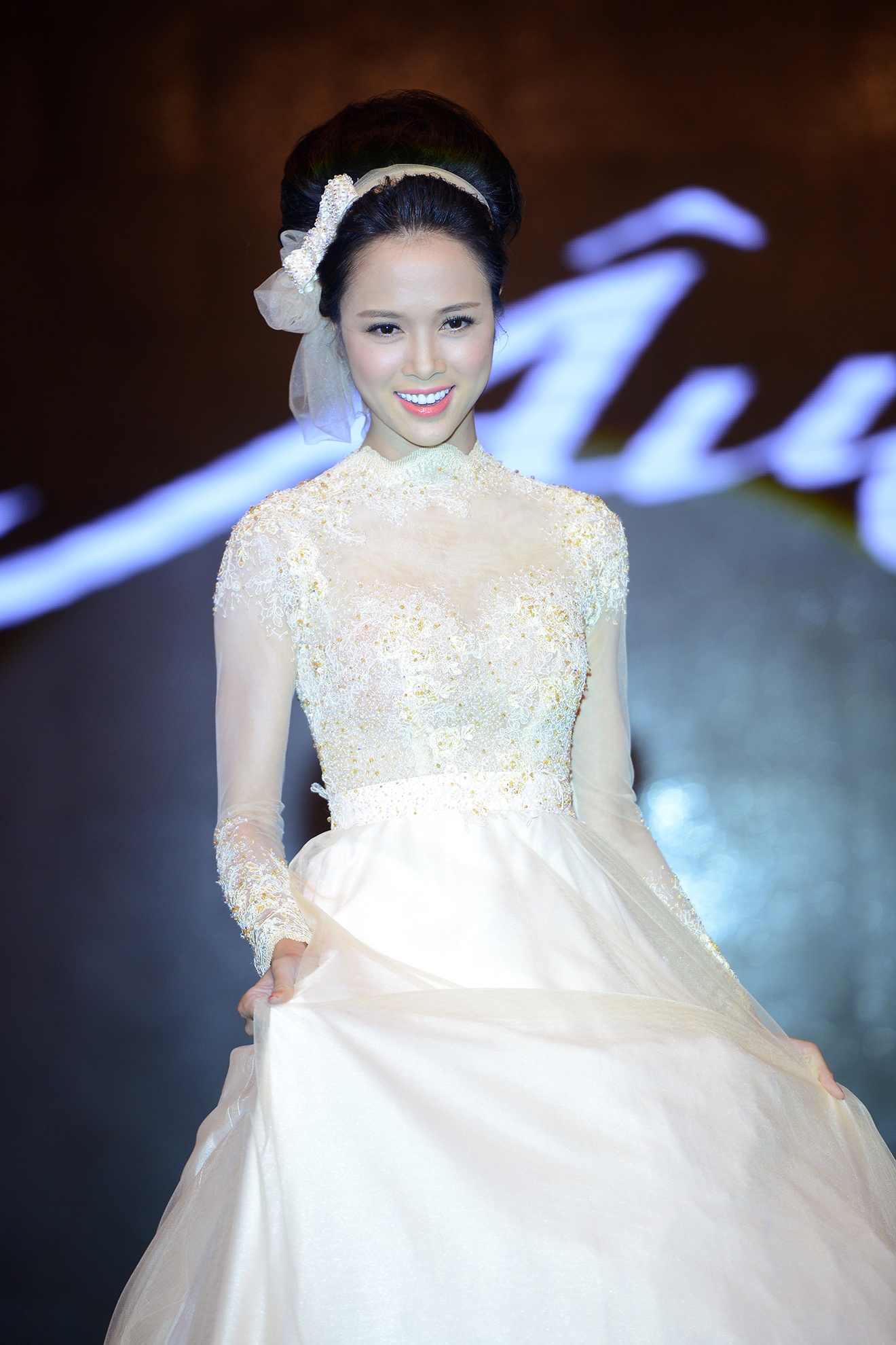 | Á hậu Việt Nam 2012 Hoàng Anh cũng có mặt. Cô diện váy cưới lộng lẫy trình diễn trên sân khấu. |