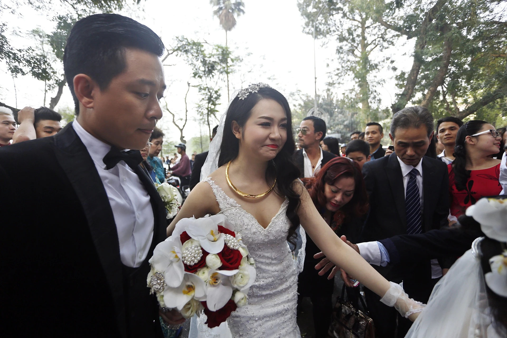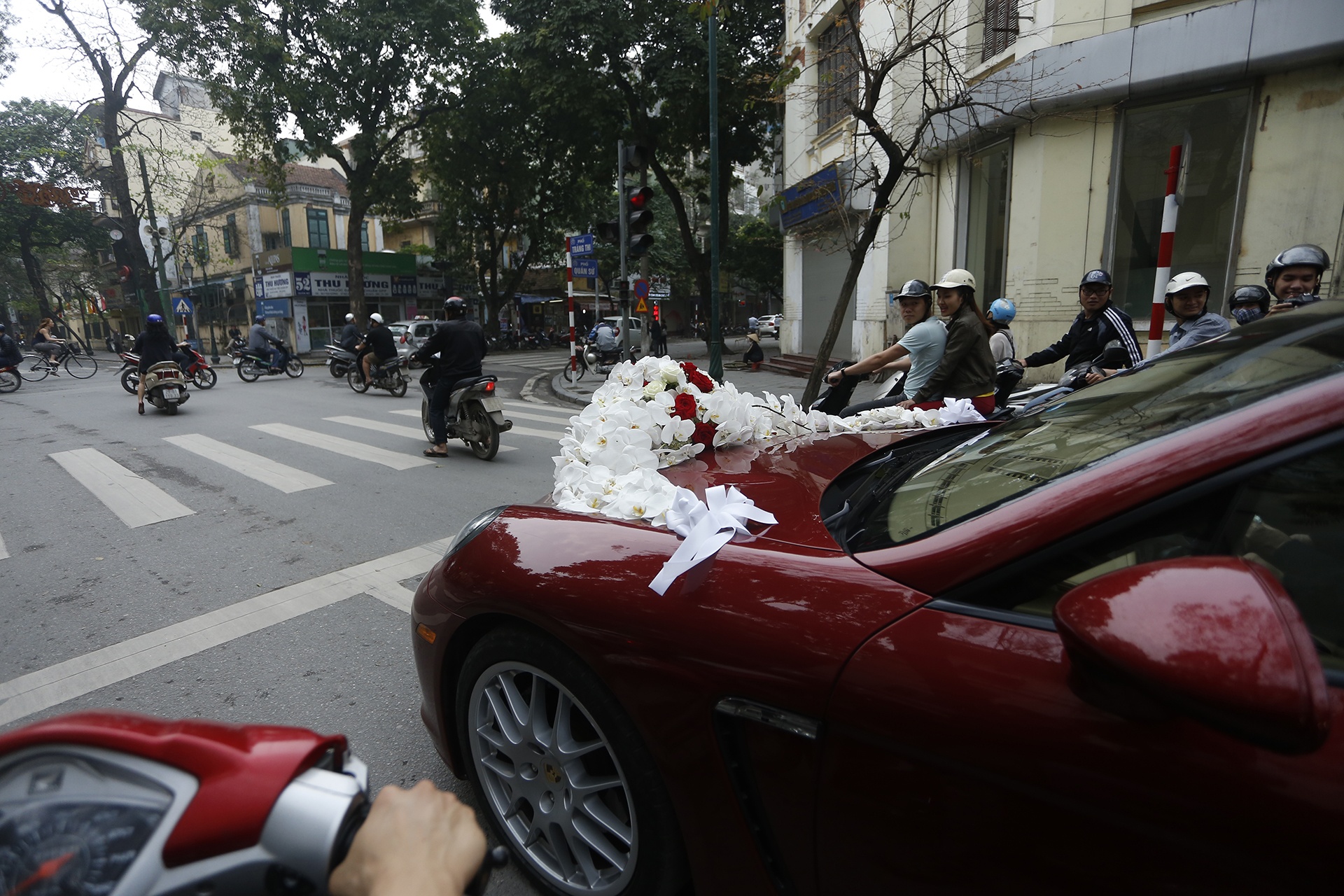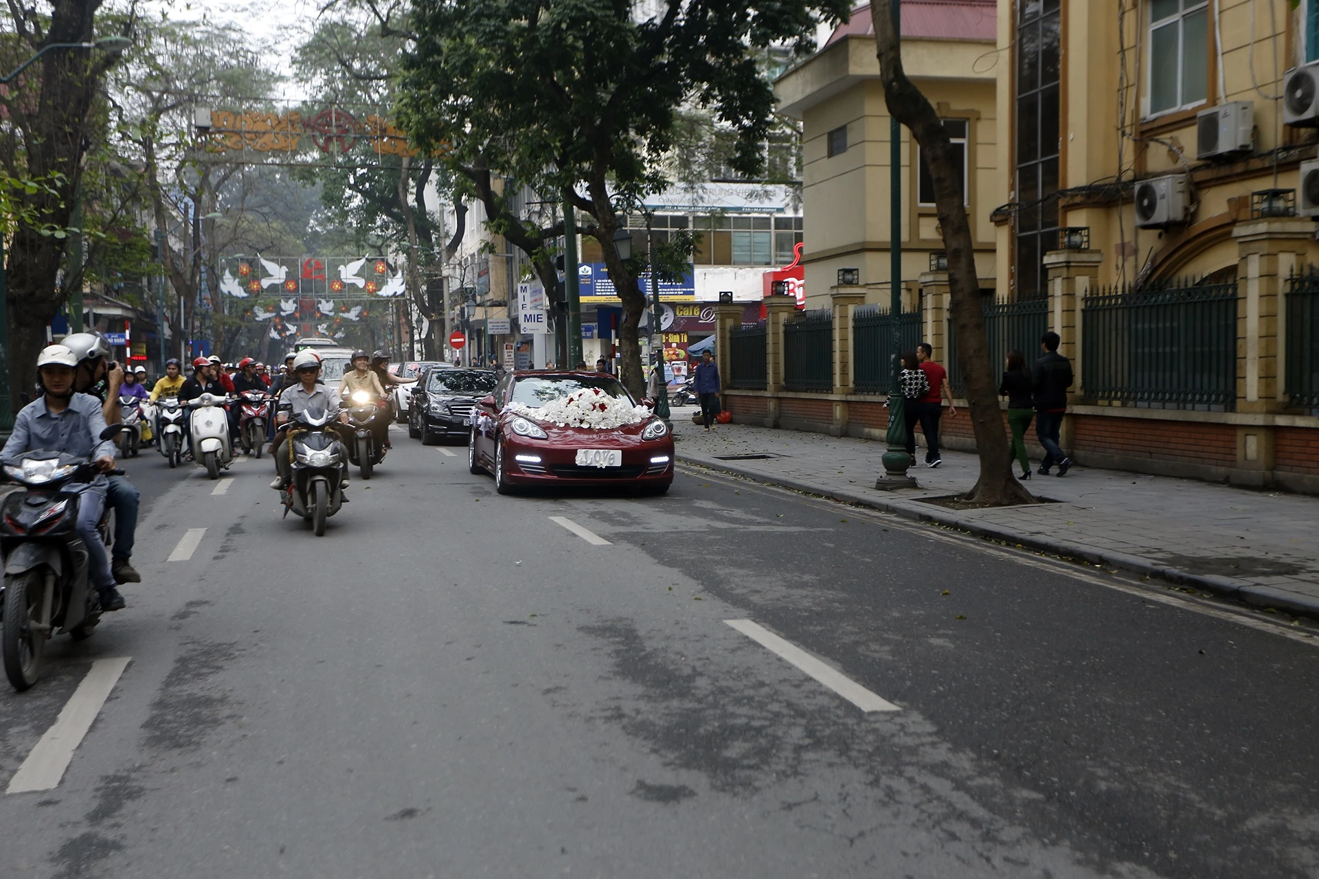 | Vì khoảng cách giữa nhà trai và nhà gái không quá xa nên đoàn xe rước dâu di chuyển khá chậm. |