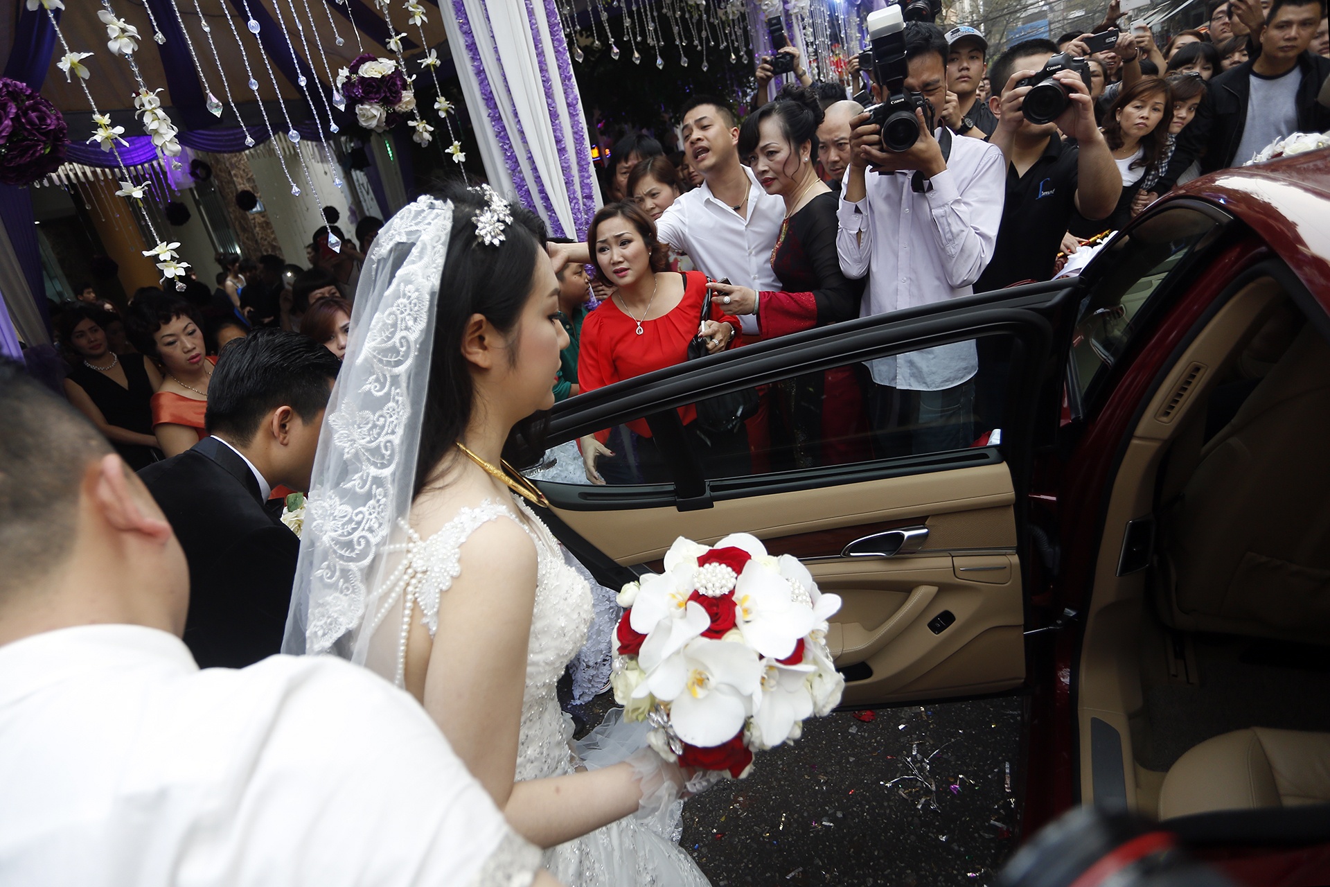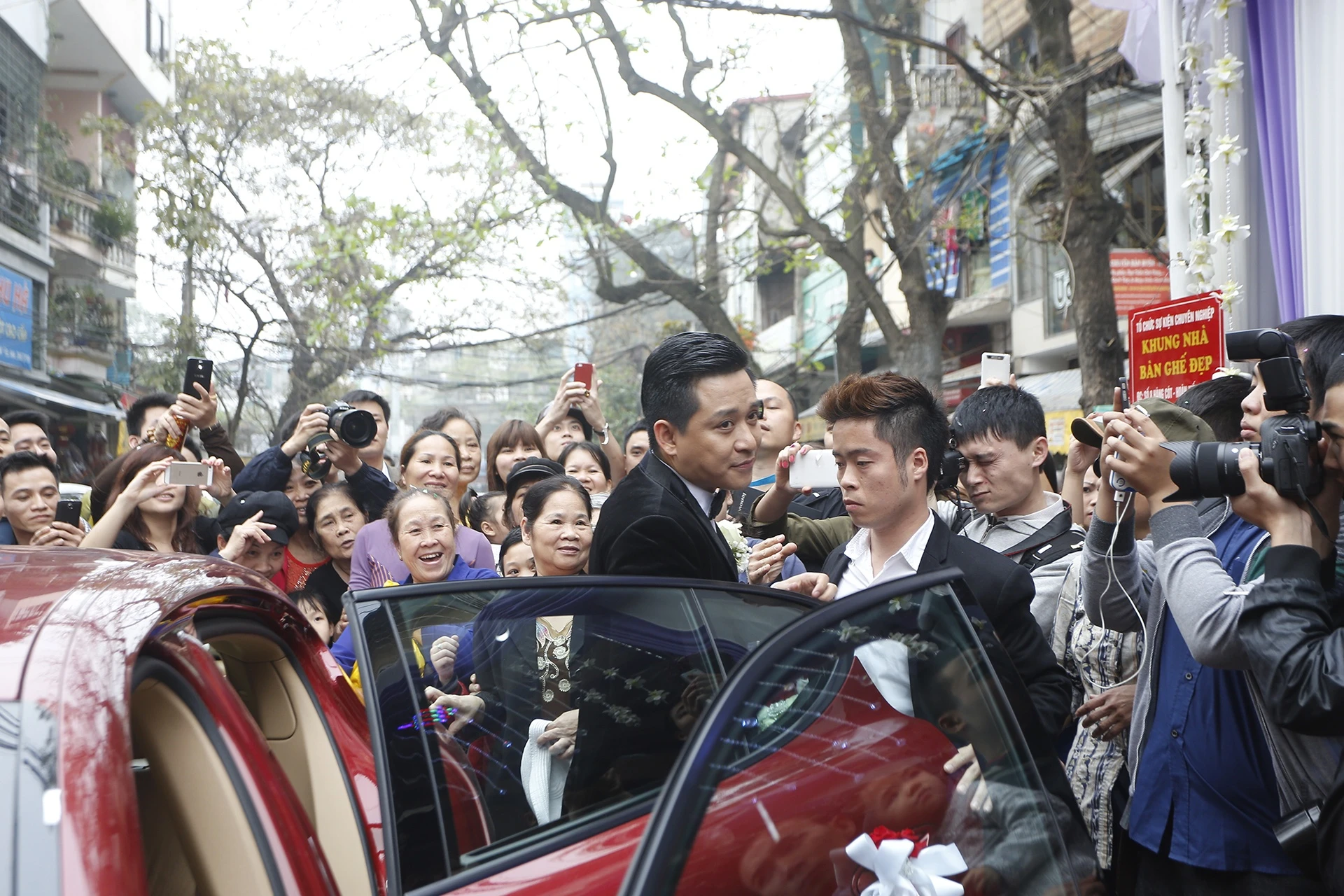 | Sự xuất hiện của Tuấn Hưng tại nhà cô dâu Thu Hương nhanh chóng thu hút sự quan tâm đặc biệt của hàng xóm và những người tò mò. Chú rể tốn khá nhiều công sức mới có thể rời xe hoa và tiến vào nhà gái. |