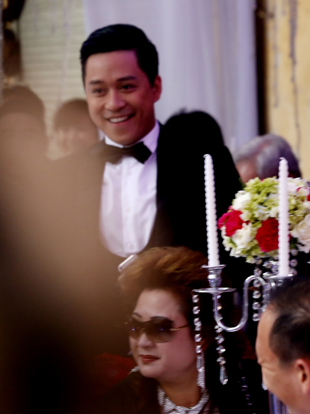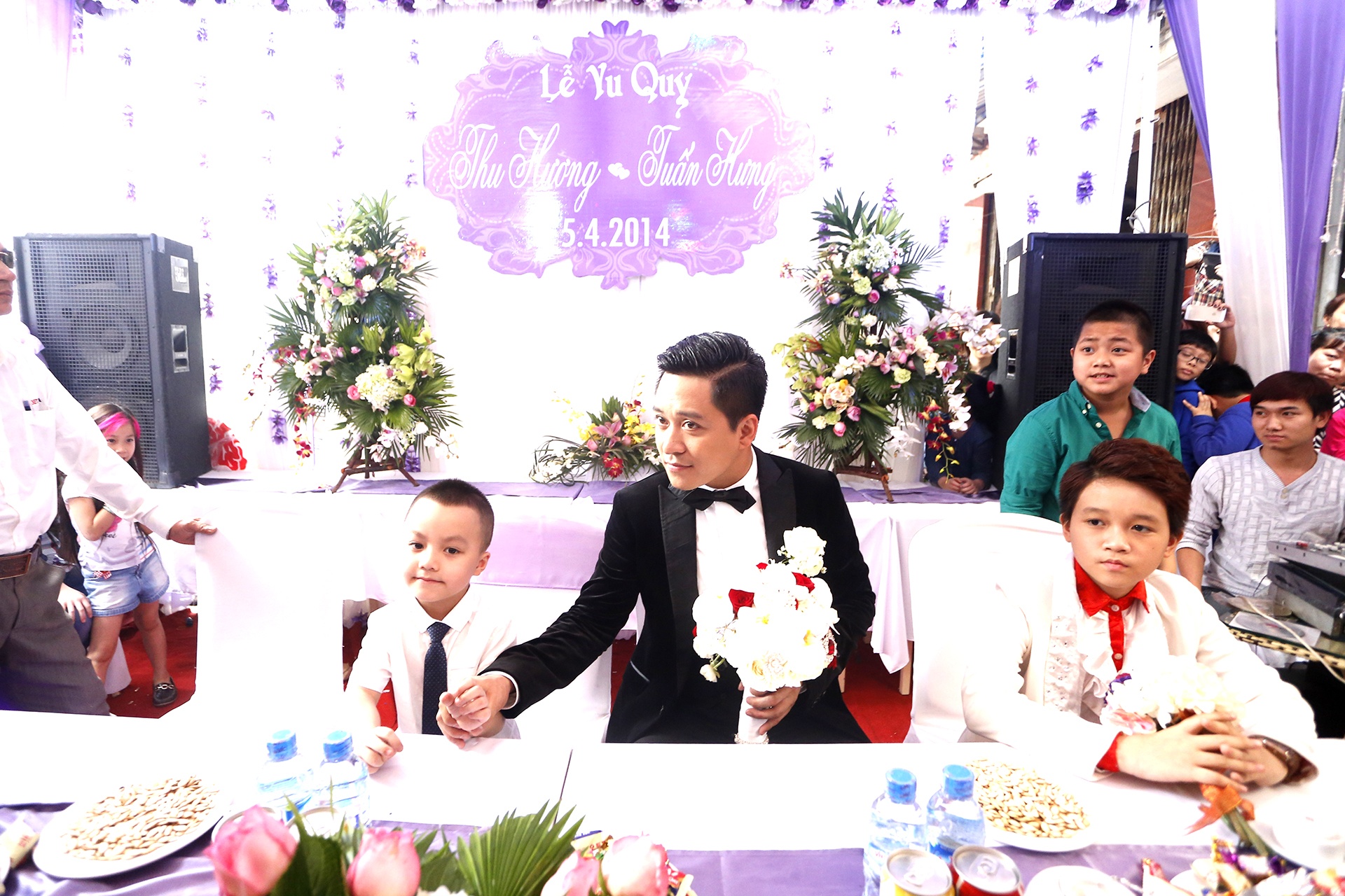 | Anh ngồi cạnh phù rể nhí và một cậu cháu thân thiết khi lắng nghe đại diện của hai bên gia đình chia sẻ cảm xúc trong ngày đặc biệt này. |
