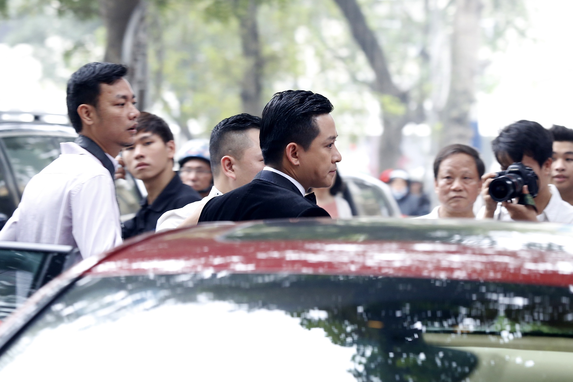 | Trưa ngày 5/4, Tuấn Hưng bảnh bao trong bộ vest đen khi cùng gia đình chuẩn bị cho lễ rước dâu. |