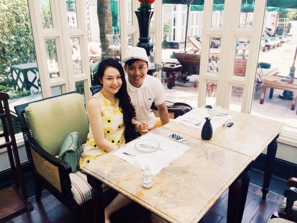 | Nam ca sĩ đưa bà xã đi ăn trưa mừng sinh nhật. |