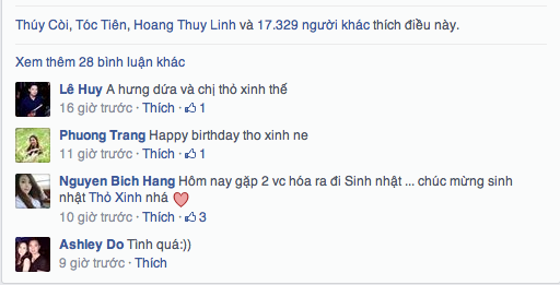 | Lời chia sẻ của nam ca sĩ nhận được hơn 17 nghìn lượt like chỉ sau một thời gian ngắn. Rất nhiều bạn bè, khán giả đã để lại lời chúc mừng sinh nhật Hương Baby và bày tỏ sự ngưỡng mộ với tình yêu đẹp của cặp đôi. |