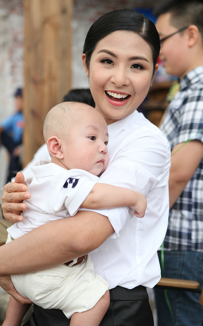 | Ngọc Hân thích thú bế Su Hào. Quý tử đầu lòng nhà Tuấn Hưng được nhận xét, thừa hưởng nhiều nét đẹp từ bố mẹ. |