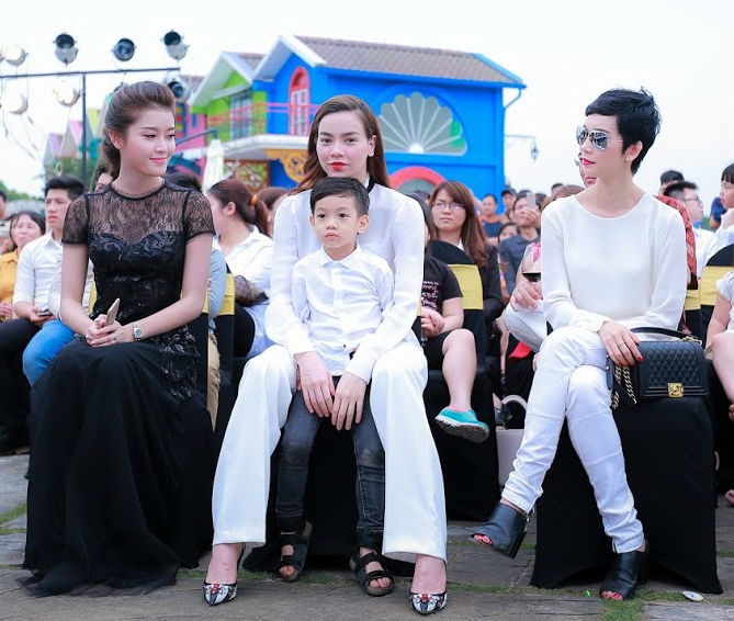| Hồ Ngọc Hà cũng đưa con trai Subeo đi tham gia buổi khai trương. Hai mẹ con nữ ca sĩ ngồi bên người mẫu Xuân Lan và Á hậu Huyền My. |