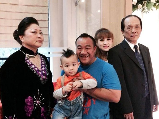 Gia đình Hiếu Hiền bên cha mẹ chú rể.
