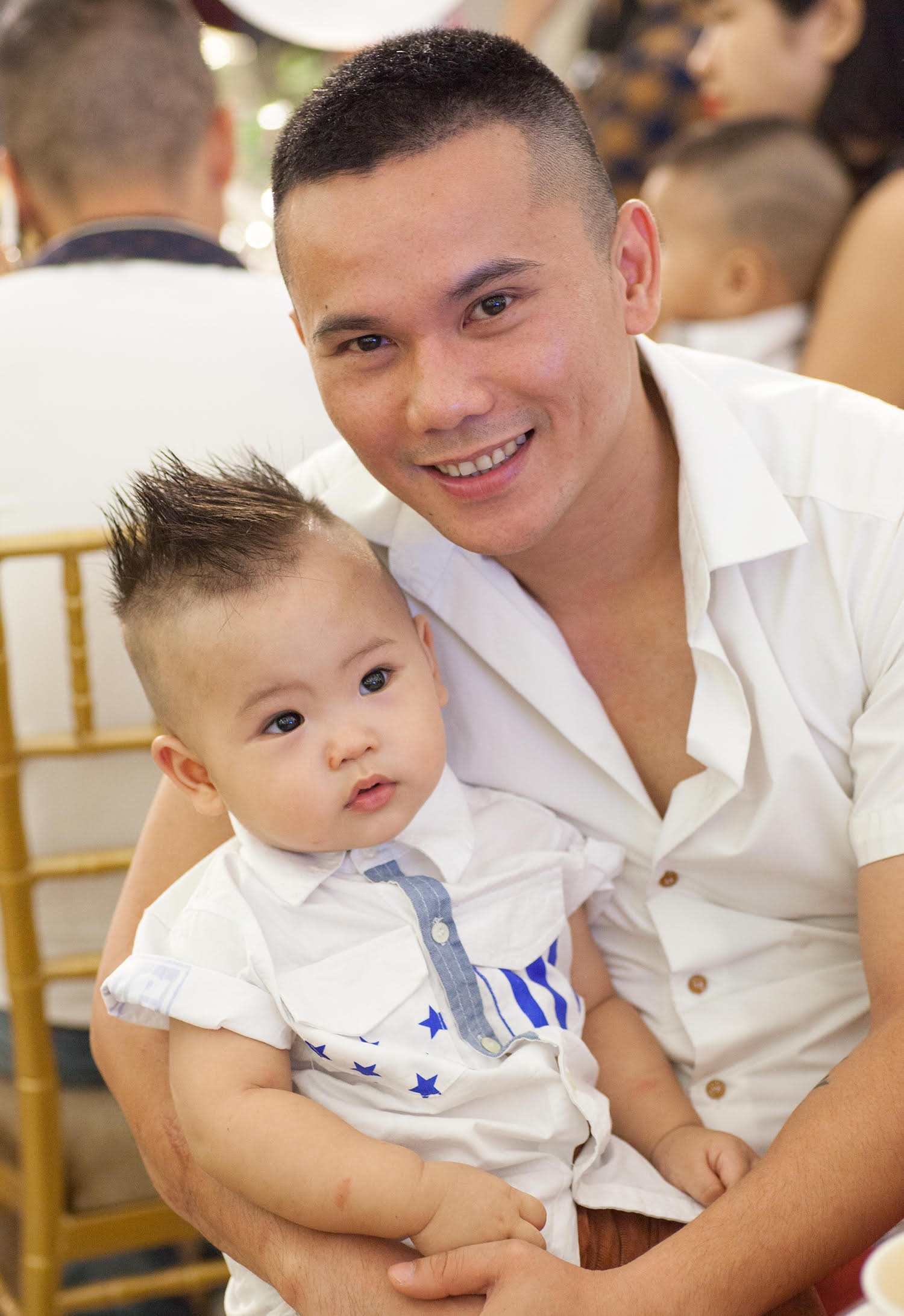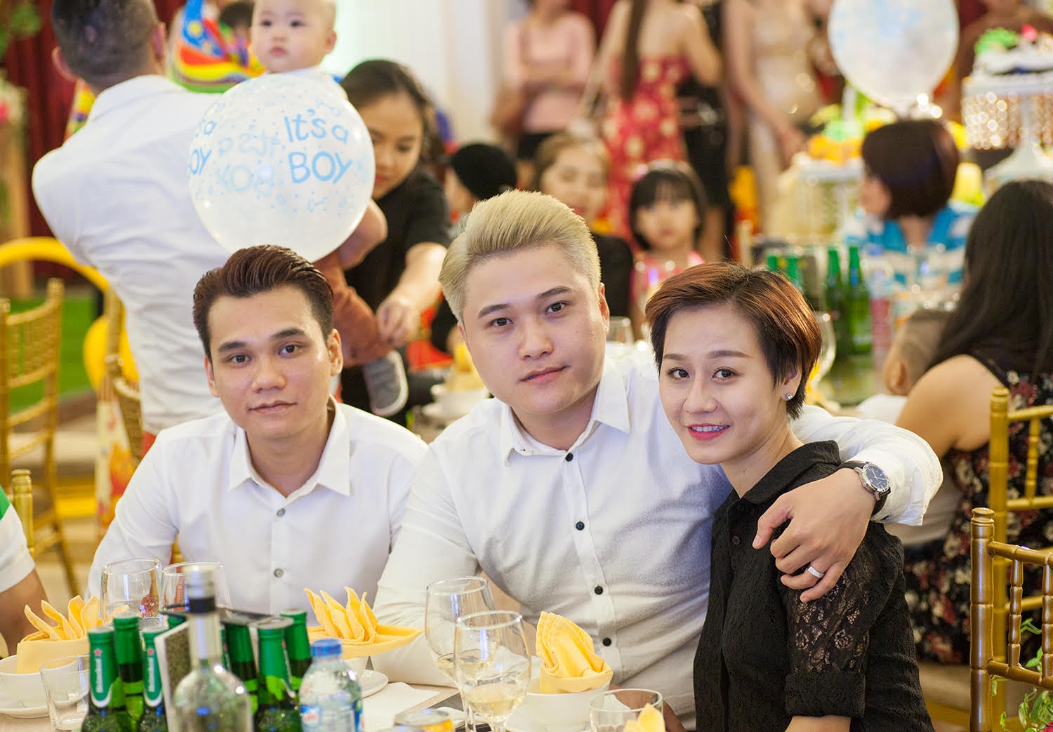 Khắc Việt và vợ chồng Vũ Duy Khánh - DJ Tiên Moon không thể vắng mặt trong ngày vui của con trai ca sĩ đàn anh. |