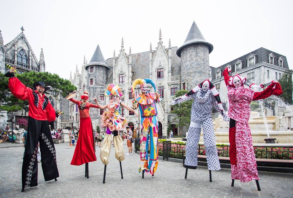 | Sau hành trình băng rừng vượt mây trên hệ thống cáp treo hiện đại để tới với miền tiên cảnh, du khách sẽ được hòa cùng không khí sôi động, xem những màn biểu diễn xiếc từ các nghệ sĩ châu Âu ngay khu vực quảng trường. |