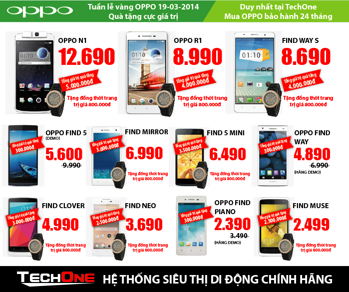 | TechOne đại lý phân phối ủy quyền OPPO. |