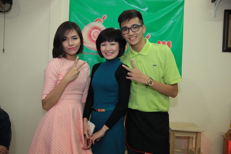 | Hà Thu bên cạnh cô và em trai. Đây là những người cùng người đẹp chung tay mở hàng nhà nhỏ này. Sau khi khai trương quán ăn đầu tiên của mình, người đẹp vẫn tiếp tục công việc một giáo viên tiếng Anh và người mẫu chuyên nghiệp. Cô đang ấp ủ nhiều dự định về nghệ thuật và sẽ giới thiệu tới khán giả trong thời gian tới. |