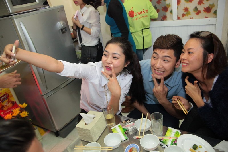 | Kim Ngân lại rủ rê họ cùng tự sướng để ghi lại khoảnh khắc tụ tập. |
