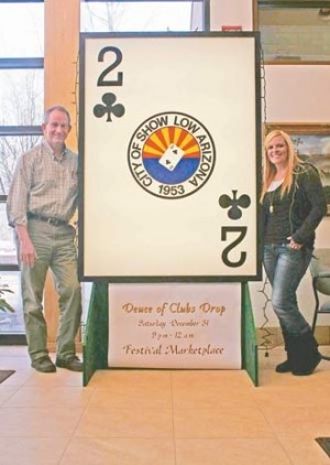 Theo phong tục, người dân nơi đây sẽ treo lá bài hai tép để chào đón năm mới. Lá bài này cũng là tên của thị trấn chính ở Show Low. Ảnh: WSB-TV. |
