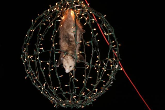 Theo phong tục ở đây, người dân sẽ cho chồn vào một chiếc lồng trang trí đèn nháy lộng lẫy và treo ở trên cao để chào đón năm mới. Trước đây, thị trấn này có tên gọi là Possum Snout (tạm dịch là mõm chồn). Ảnh: WSB-TV. |