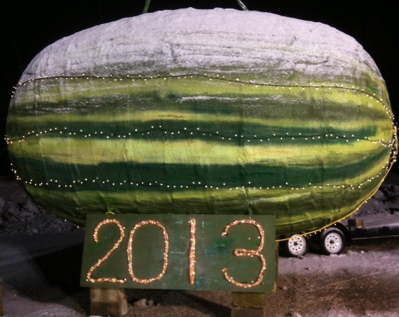 Người dân nơi đây lại sử dụng một quả bóng hình dưa dấu cao tới 5,4 m và nặng tới 227 kg để đón chào năm mới. Ảnh: WSB-TV. |