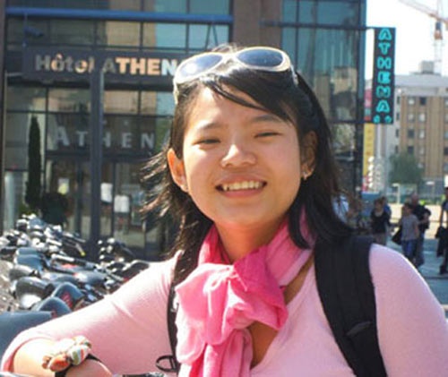 | Cô gái nhỏ nhắn Minh Thi với nụ cười rạng ngời trên đất Pháp. |