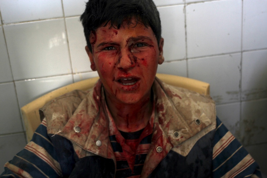 | Một thiếu niên Syria bị thương sau vụ tấn công bạo lực ở làng Ain Larouz, tỉnh Idlib, ngày 15/5. Ảnh: Reuters |