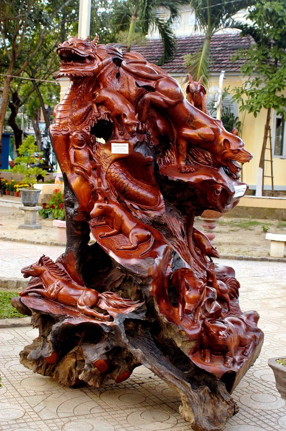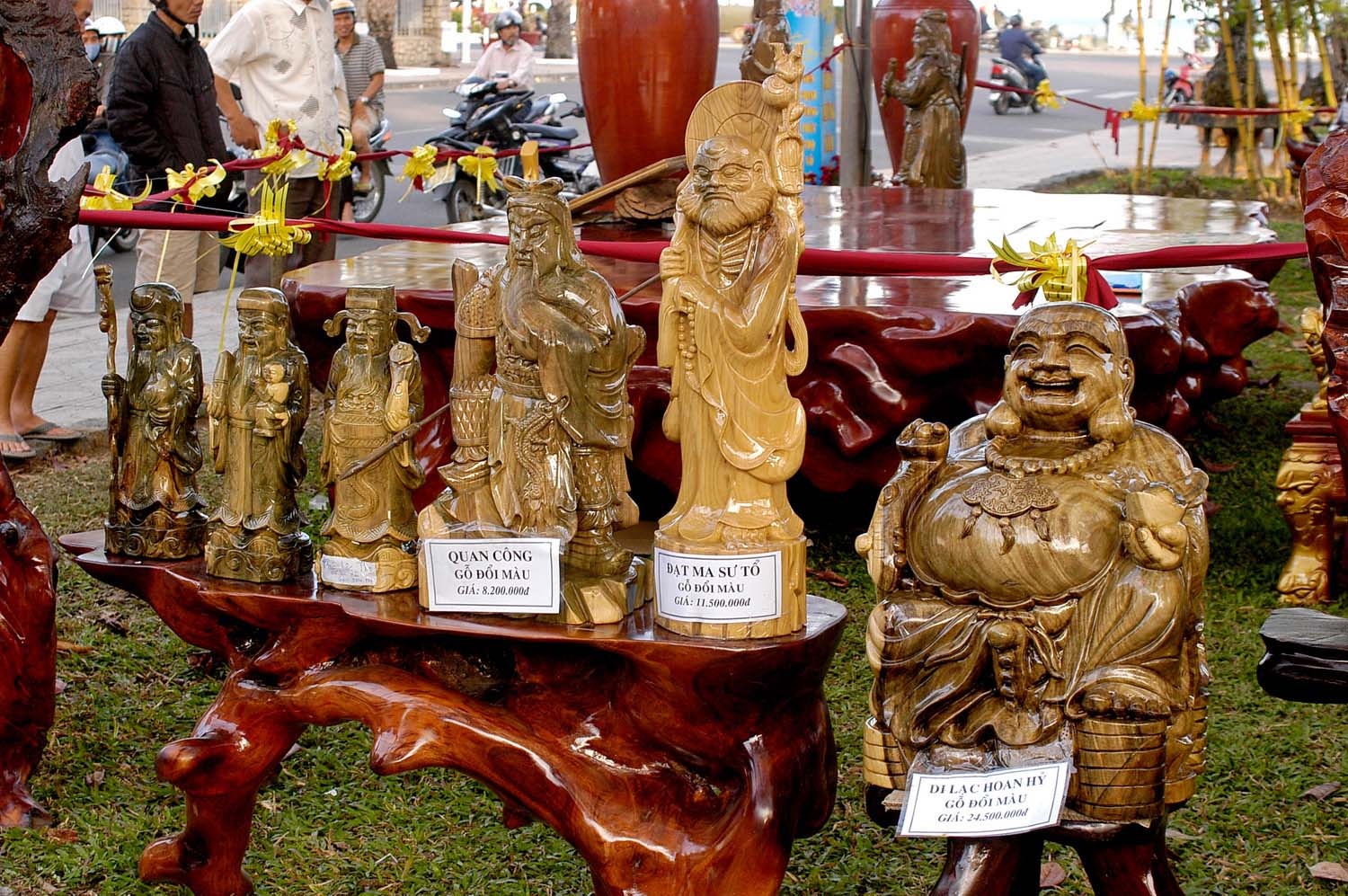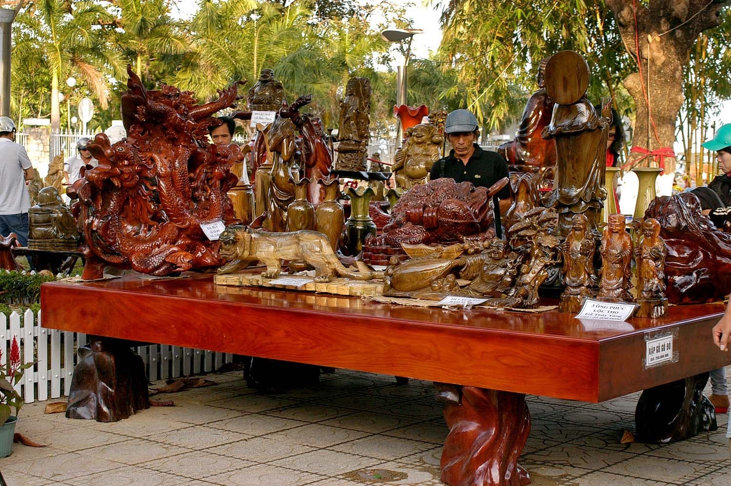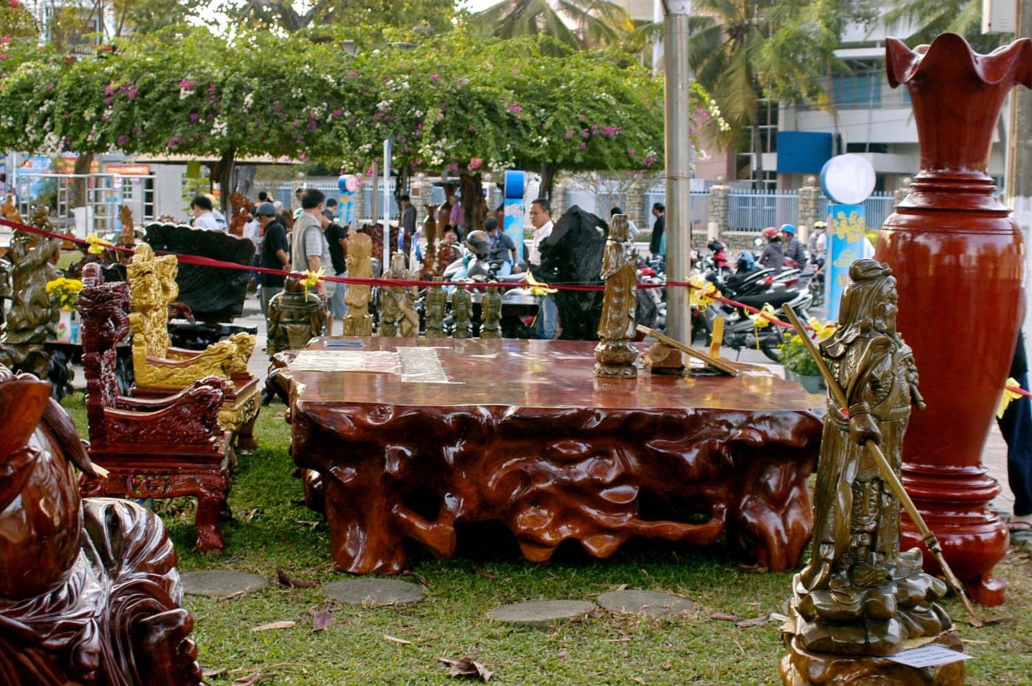 | Lễ hội kéo dài từ 23/1 đến 4/2 dọc theo đường Trần Phú, Nha Trang. Một trong những mặt hàng đắt tiền được bày bán là đồ gỗ điêu khắc. |