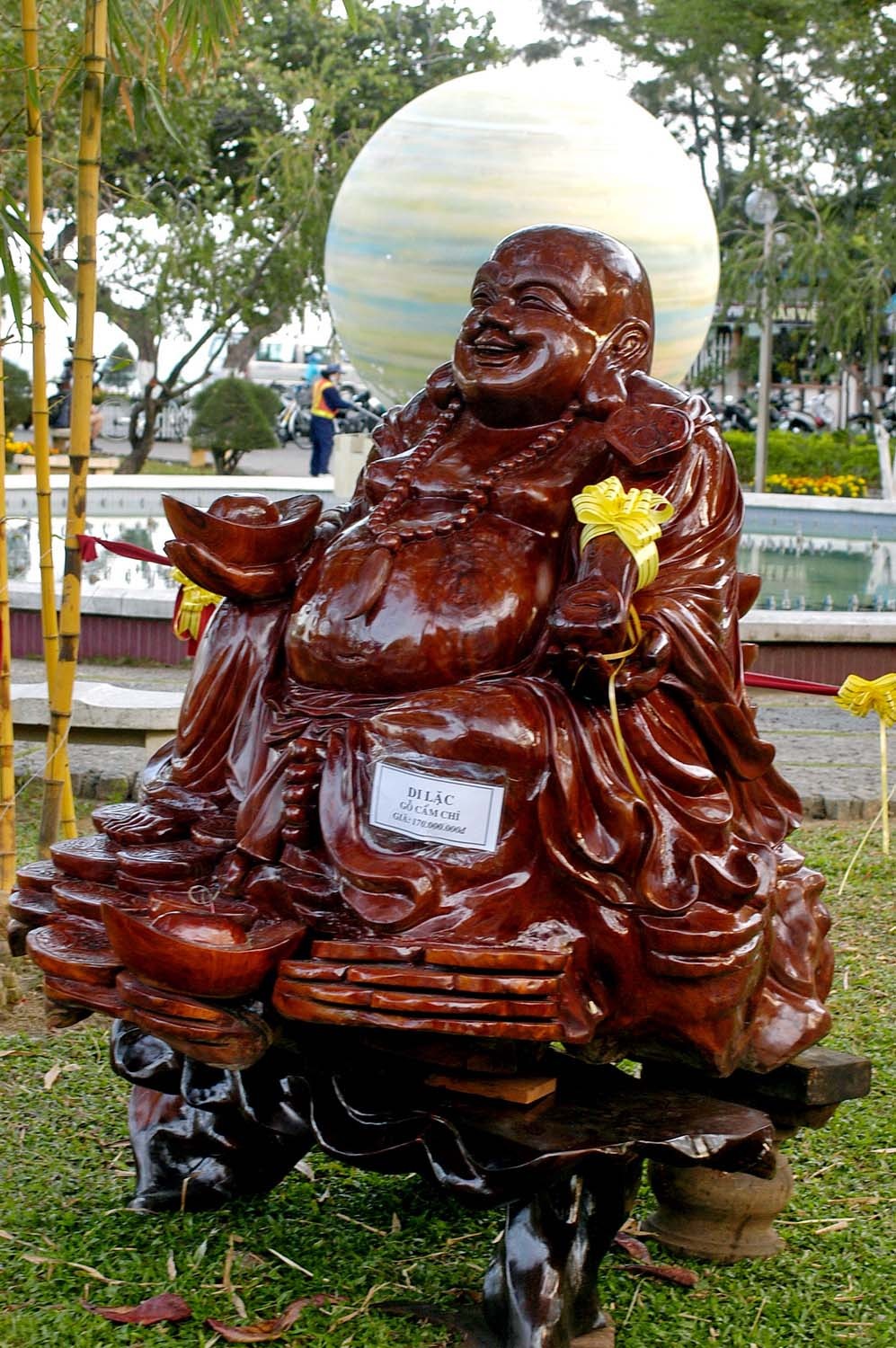 | Còn bức tượng Phật Di lặc bằng gỗ Cẩm Chỉ, giá 170 triệu đồng. |