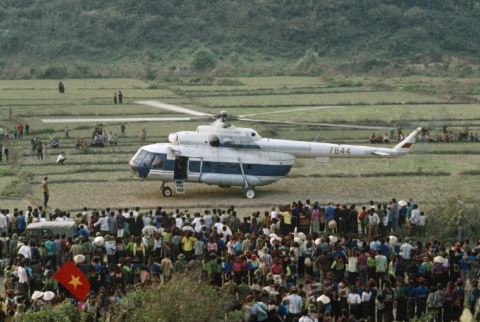 Hàng trăm người tập trung tại chiến trường Điện Biên Phủ chờ Đại tướng xuất hiện. Tôi lắp phim cho máy ghi hình và chọn vị trí thuận lợi để chụp ảnh. Nắng nóng, khát nước khiến tôi muốn chui vào bụi cây tránh nắng. Tuy nhiên, tôi lại sợ khi ông đến mà tôi không sẵn sàng, tôi sẽ mất đi những khoảnh khắc đẹp. Tôi muốn chụp khung cảnh, con người nơi đây nhưng không mang đủ phim. Người dân địa phương ở đây rất thú vị. Nhiều người trong đám đông thuộc dân tộc Thái đen. Các em thiếu nhi mặc đồng phục của đội viên, với khăn quàng đỏ trên cổ, và cầm áp phích chào đón vị tướng tài.
