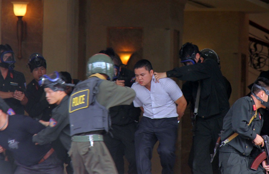 Tháng 5/2012, Công an Hà Nội tổ chức diễn tập chống cướp ngân hàng, giải cứu con tin.
