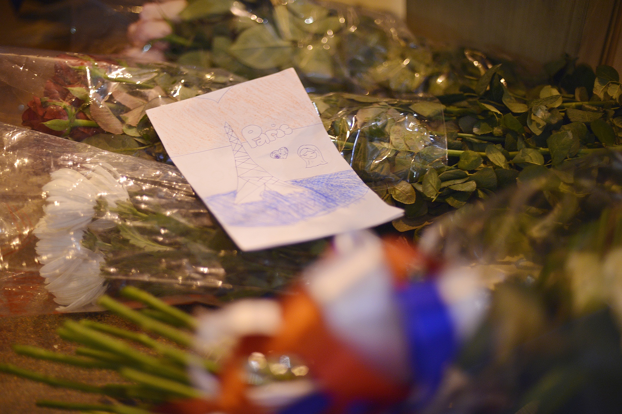 Nhiều người Việt Nam và bạn bè quốc tế đã đến Đại sứ quán Pháp (Hà Nội) để bày tỏ nỗi đau sau vụ tấn công khủng bố làm 129 người thiệt mạng ở Paris.