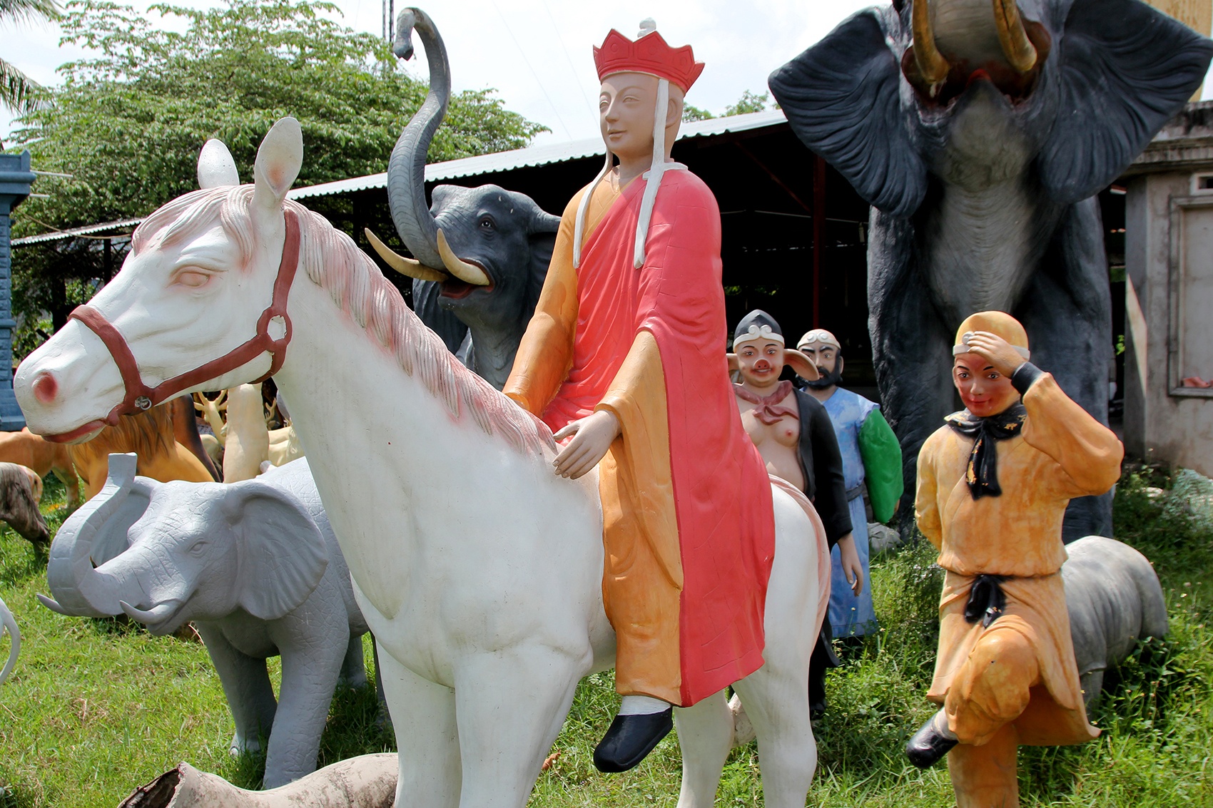 | Bộ tượng thầy trò Đường Tam Tạng rất sống động có giá 8 triệu đồng mỗi tượng. |