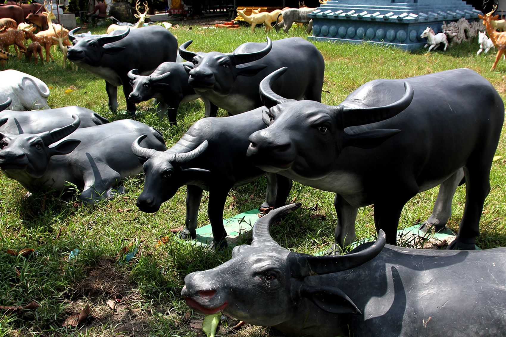 | Ngoài ra tại xưởng làm tượng này còn trưng bày nhiều loại tượng động vật khác với đủ màu sắc, kích thước khiến nhiều người đi qua không tránh khỏi tò mò. |