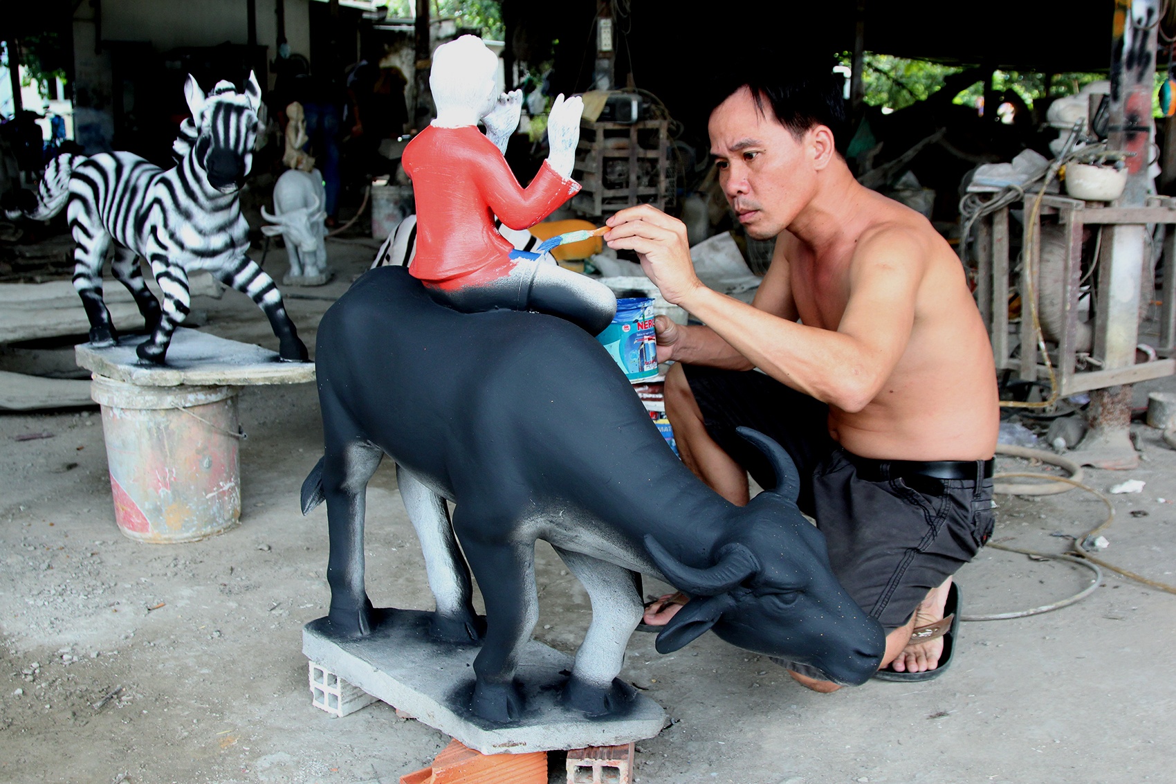 | Nguyên liệu chính làm ra những bức tượng này là xi măng và khung sắt. |