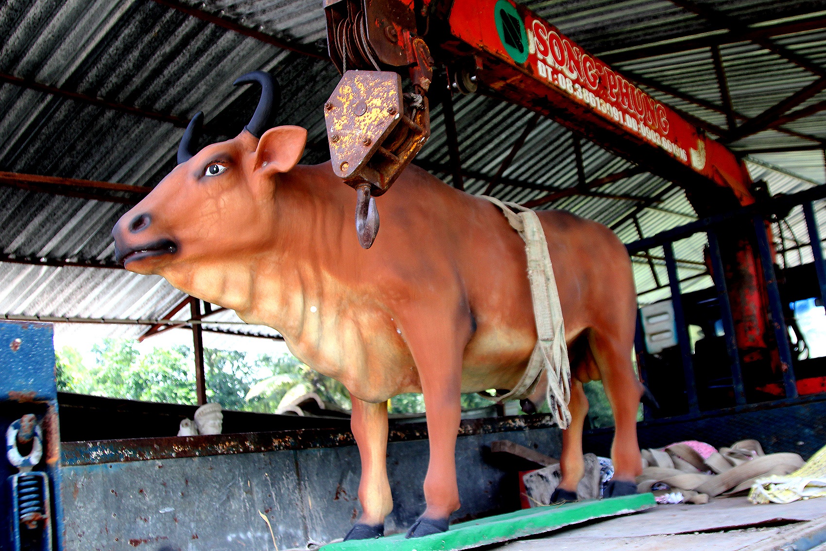 | Những con to, trọng lượng lớn phải dùng cần cẩu chuyển lên xe mang đi. |